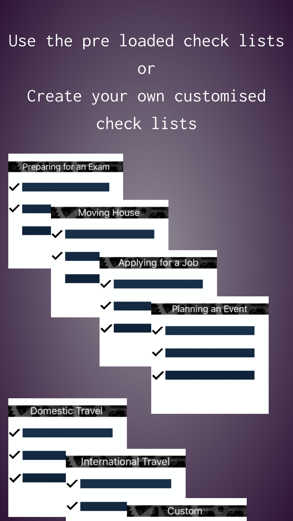 Create your own customised check lists.