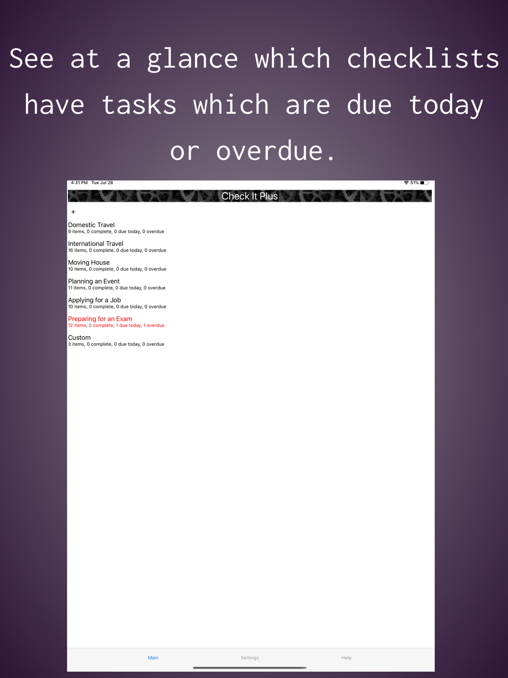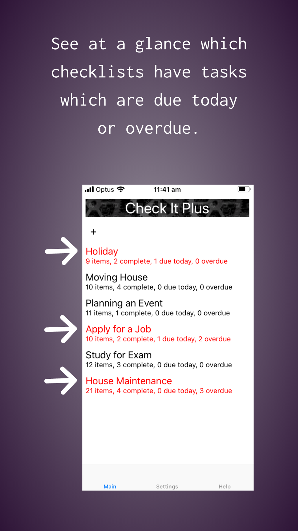 See at a glance which check lists have tasks that are due TODAY or are overdue.