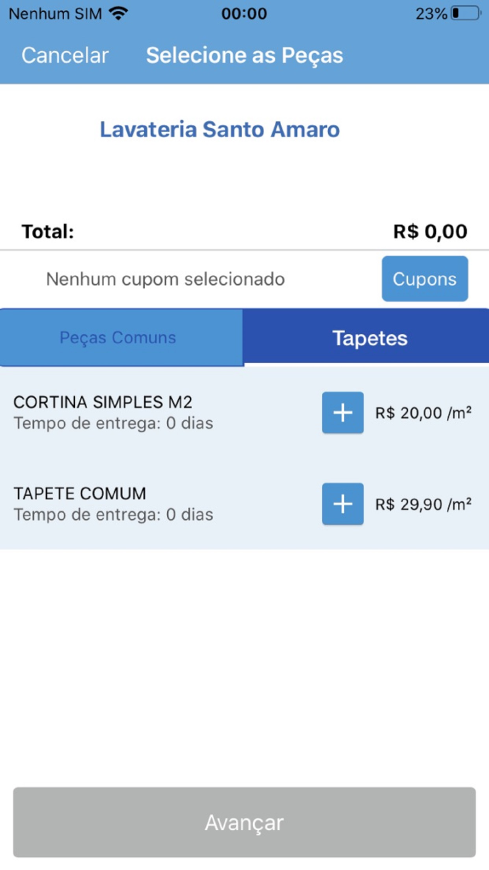 Aplicativo para solicitar lavagem de roupas, objetos e tapetes em umas das lojas da rede Lavateria.