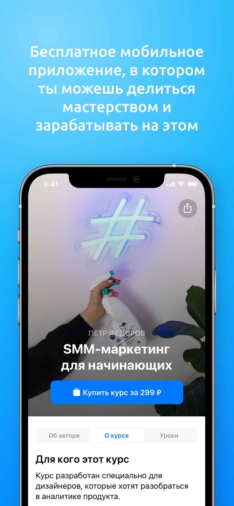 Приложение идеально подходит для старта, так как бесплатное. Только после продажи курсов приложение запрашивает 15%, ещё 15% — забирает Apple Store.