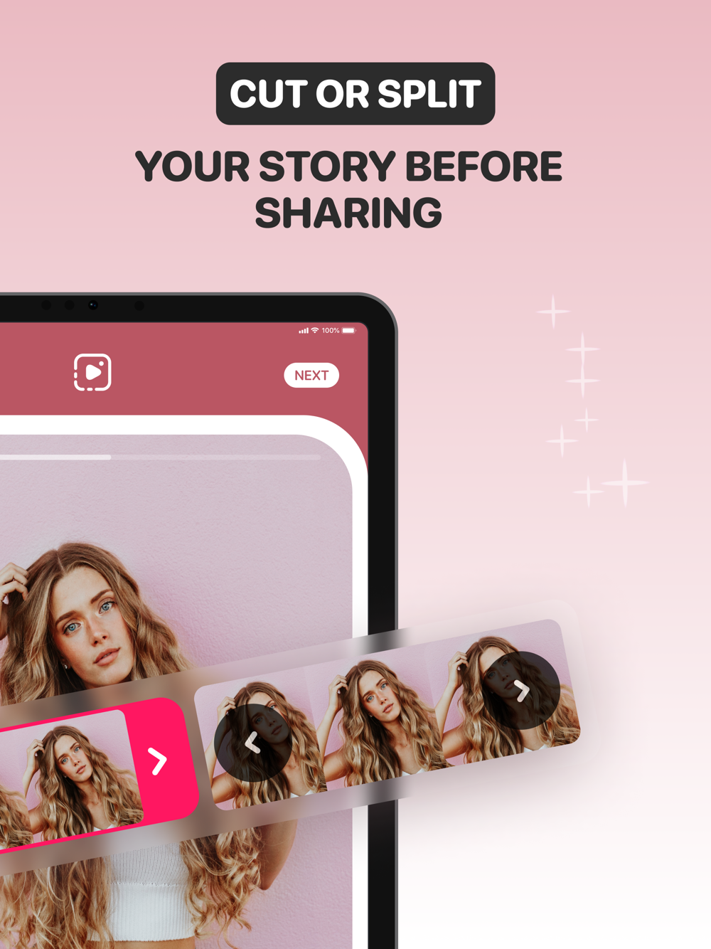 Cut long videos or create a perfect story for social media such as Instagram, TikTok, or Facebook. All in a few clicks! Using our easy-to-use video editor, you can choose the splitting length from the original video and download the part that looks best for you! But not only that!