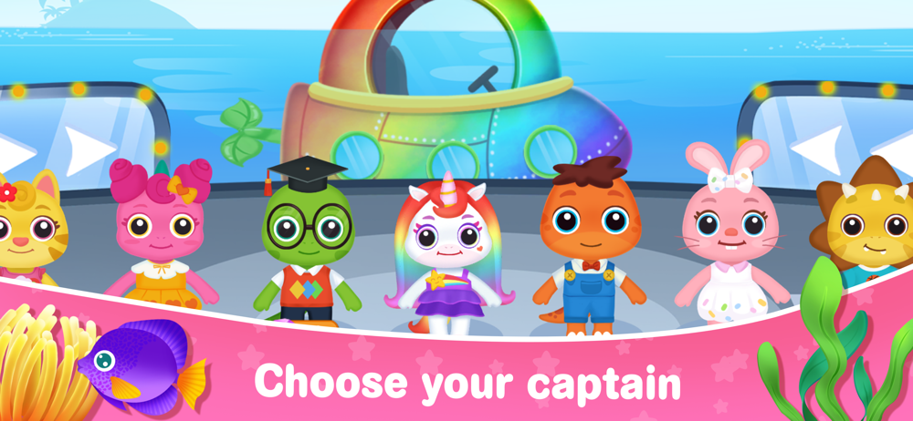 You can select your favourite submarine and captain, earn treasure by rescuing the trapped fish or ocean animals while exploring in a large map. With bright colors, and a lot of animations, these interactive activities will ignite your child's imagination and give them hours of active fun. Enjoy!