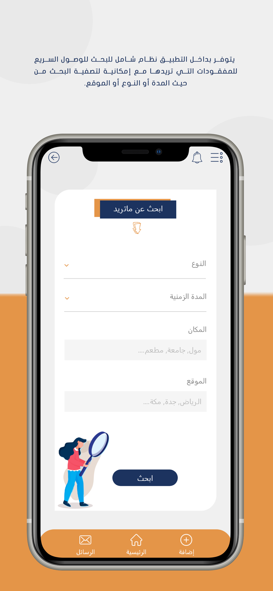 • يتوفر بداخل التطبيق نظام شامل للبحث للوصول السريع للمفقودات التي تريدها مع إمكانية لتصفية البحث من حيث المدة أو النوع أو الموقع.