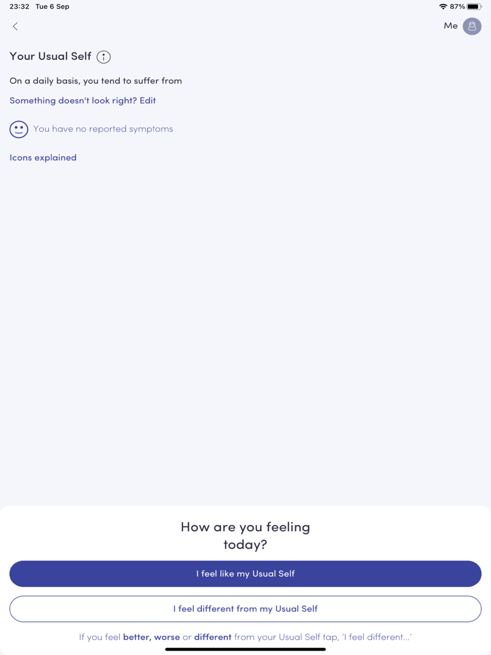 We will ask you to set up your ‘Usual Self’, this is your personal health baseline and will indicate any symptoms you may frequently suffer from. By telling us how you feel each day and reporting any changes in your usual symptoms, we will be able to relay valuable data to scientists.