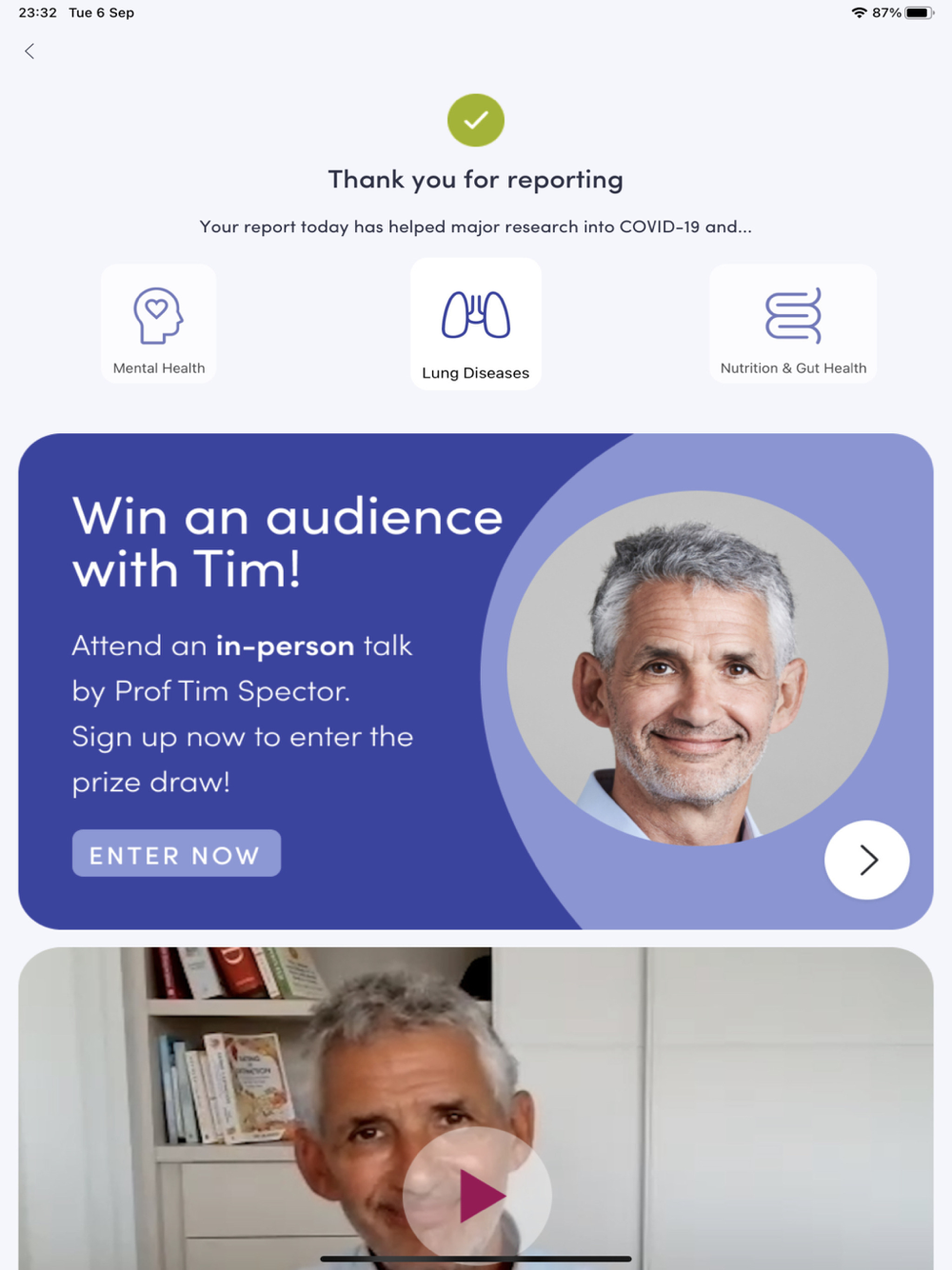 This app (formerly known as the ZOE COVID Study) allows you to help others but does not give health advice. If you need health advice please visit the NHS website.