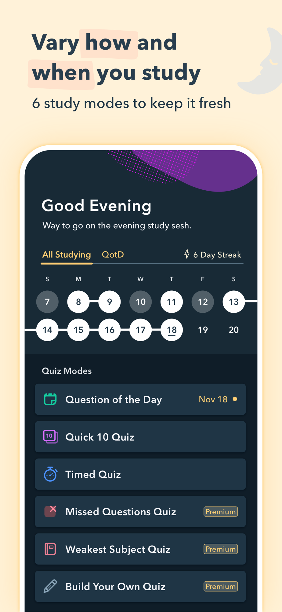 Scientific research shows that studying in short bursts over time is more effective than a handful of long study sessions. Our app is built with this in mind, giving you the power to study from your phone whenever and wherever it's convenient for you. Easily access practice questions while waiting in line, on public transit, on meal breaks, and more!