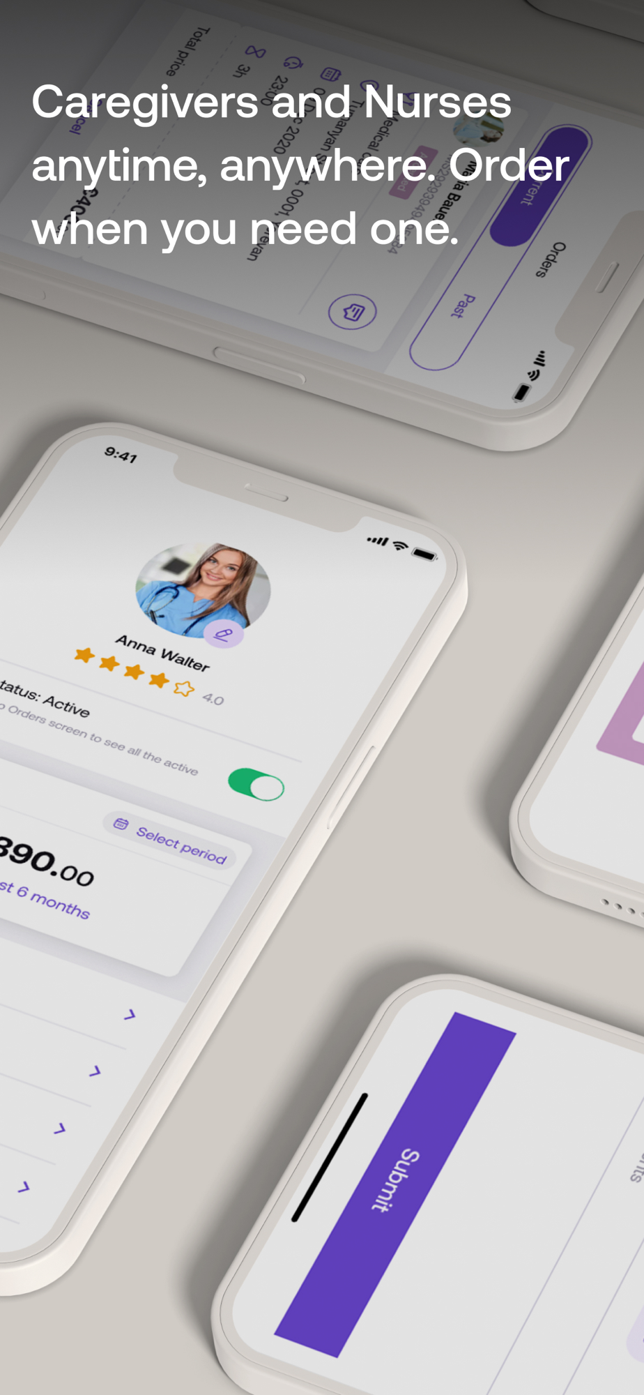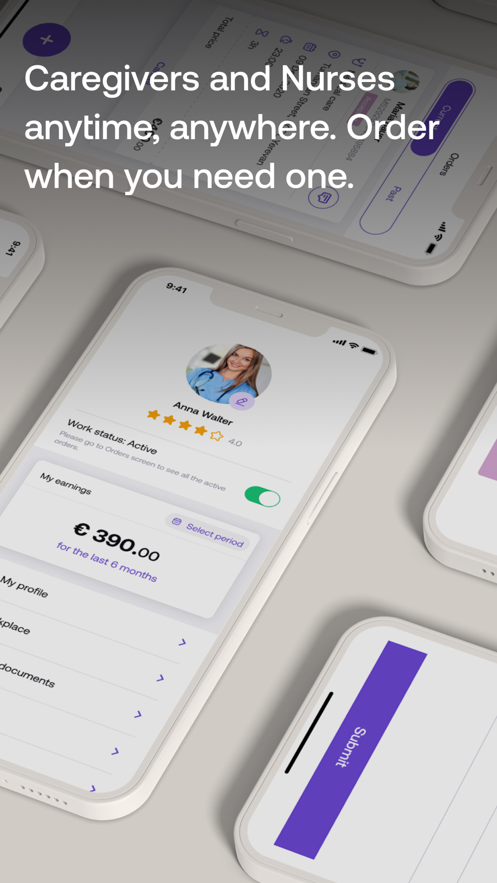 From now on, you can easily book care services via app and directly with the caregiver. You decide how much you want to pay for the booked services. The app will then match your requests with our network of caregivers and one of the verified healthcare and nursing professionals will take your order.