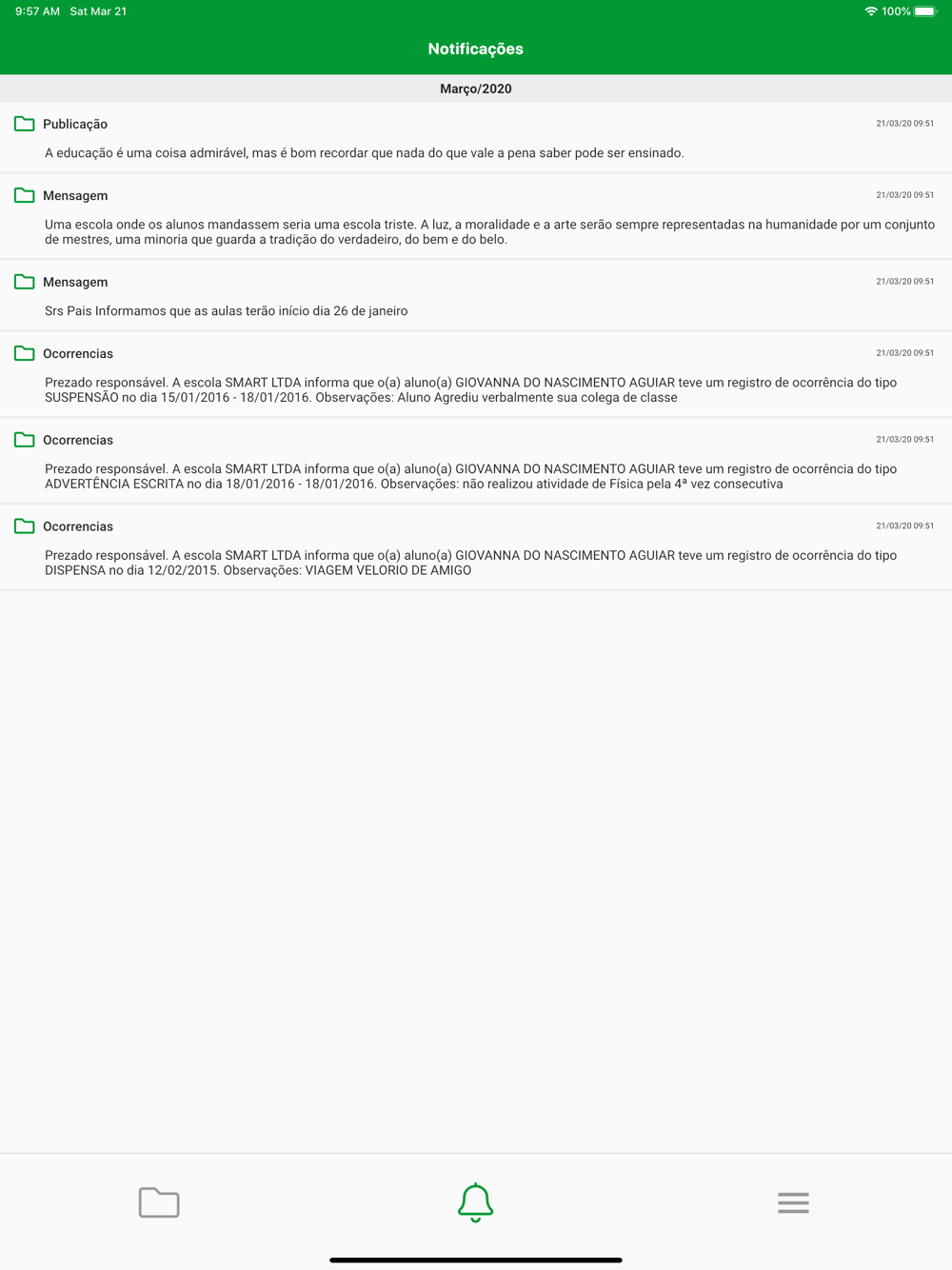 Avisos, ocorrências escolares, declaração de pagamentos, enfim....