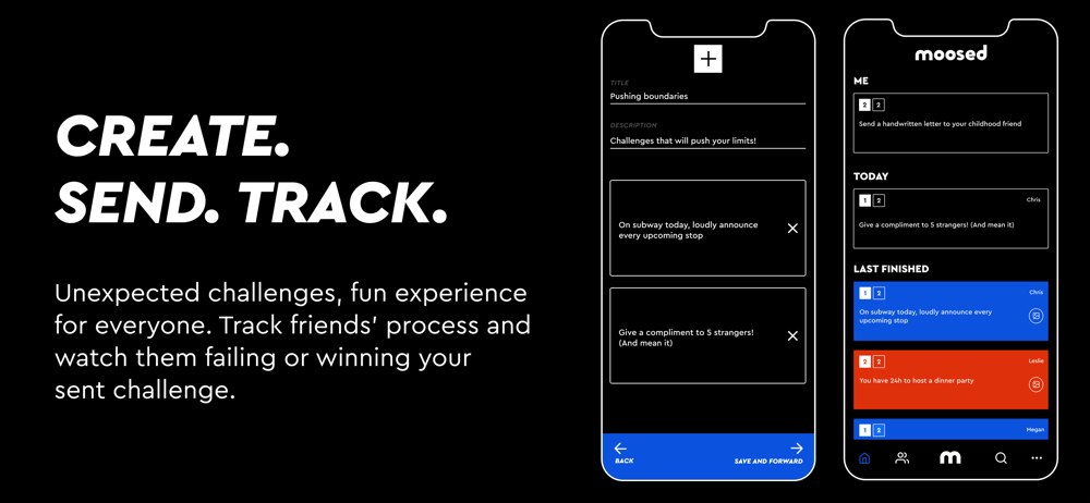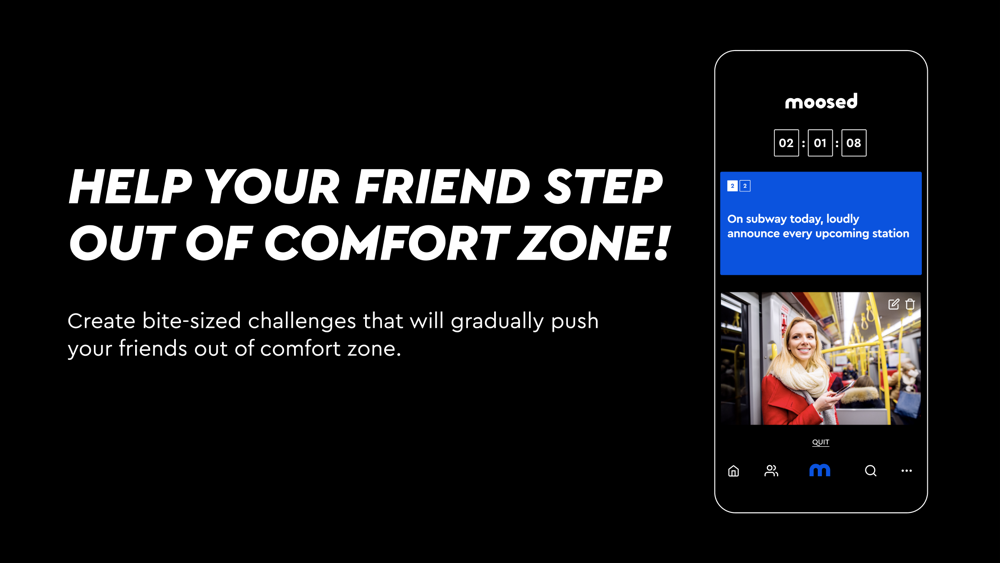 With Moosed app you can create bite-sized challenges, that support friends' long-term growth.