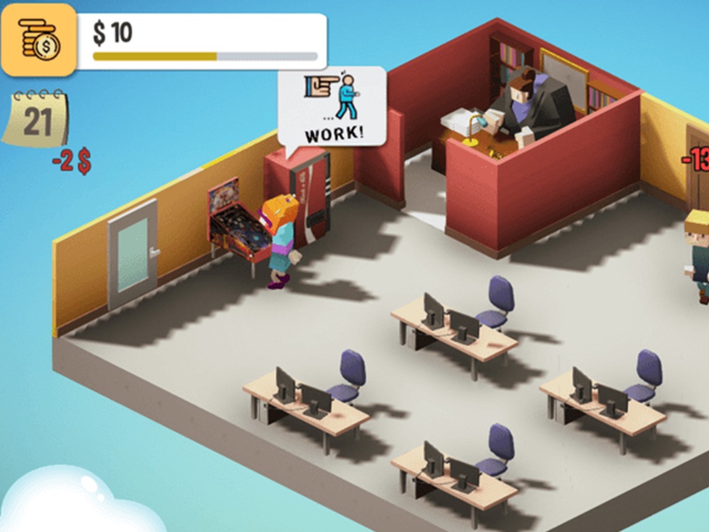 Office Simulator run is very similar to an ordinary office. You can do your jobs with laptops, printers, copiers, scold your employee, or save money at a bank.