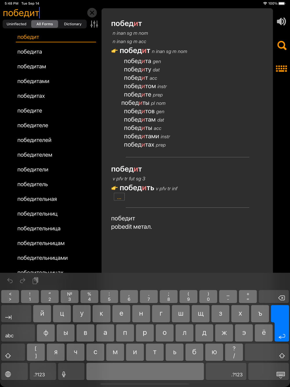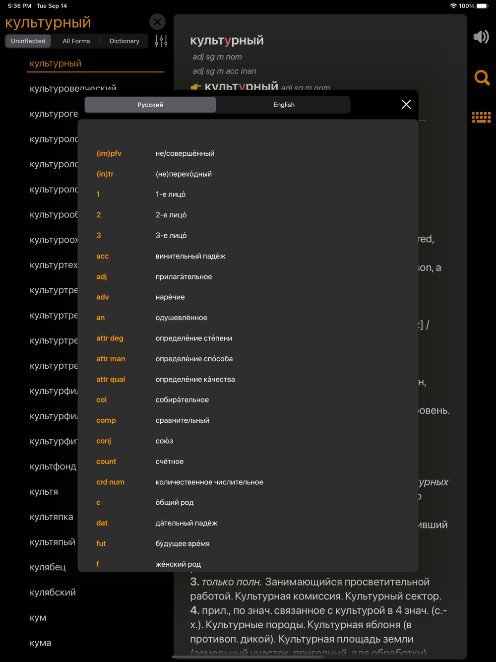 Russian inflection is a tricky topic for language students. RuFlex Pro features all possible derived forms for more than 178,000+ Russian words — categorized, accentuated and augmented with articles from THREE additional dictionaries: Russian-English, explanatory and synonym dictionaries.