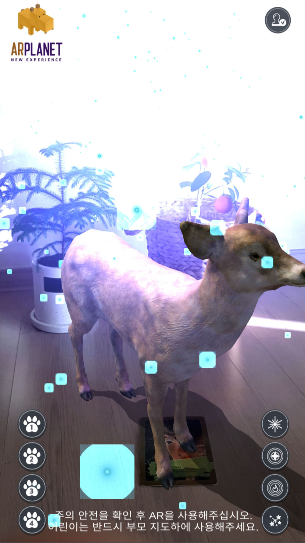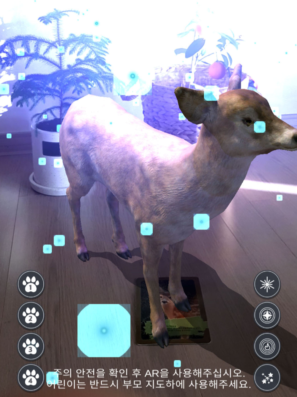 - 원하는 동물 이미지를 바닥에 놓고 비추면 동물이 소환됩니다. AR카드로 동물을 소환하면 동물 주위를 돌며 360도 방향에서 현실감있게 감상할 수 있습니다.