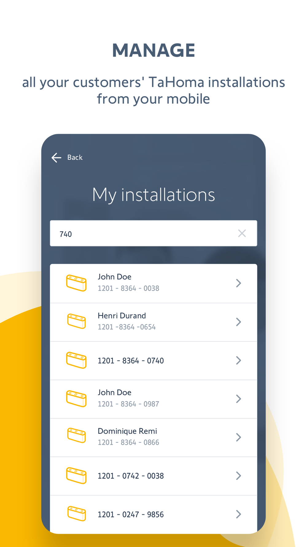 • Direct access to your customer’s TaHoma application to create rooms and scenes