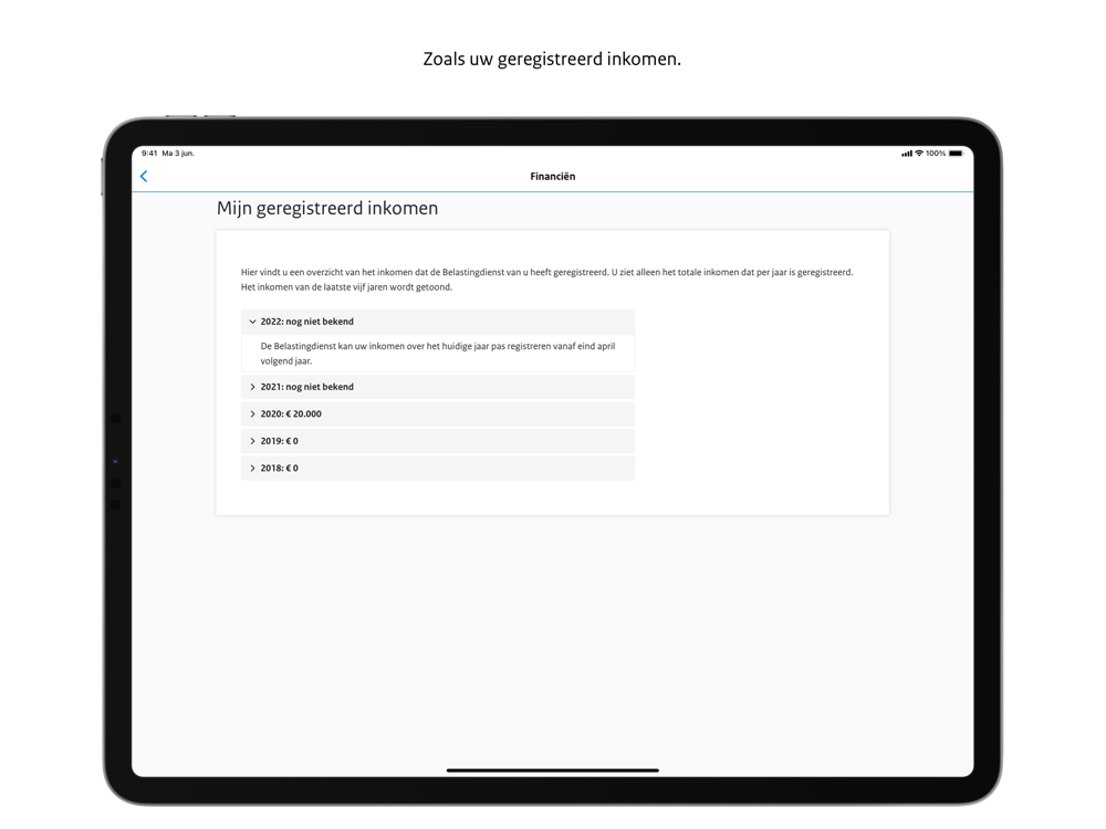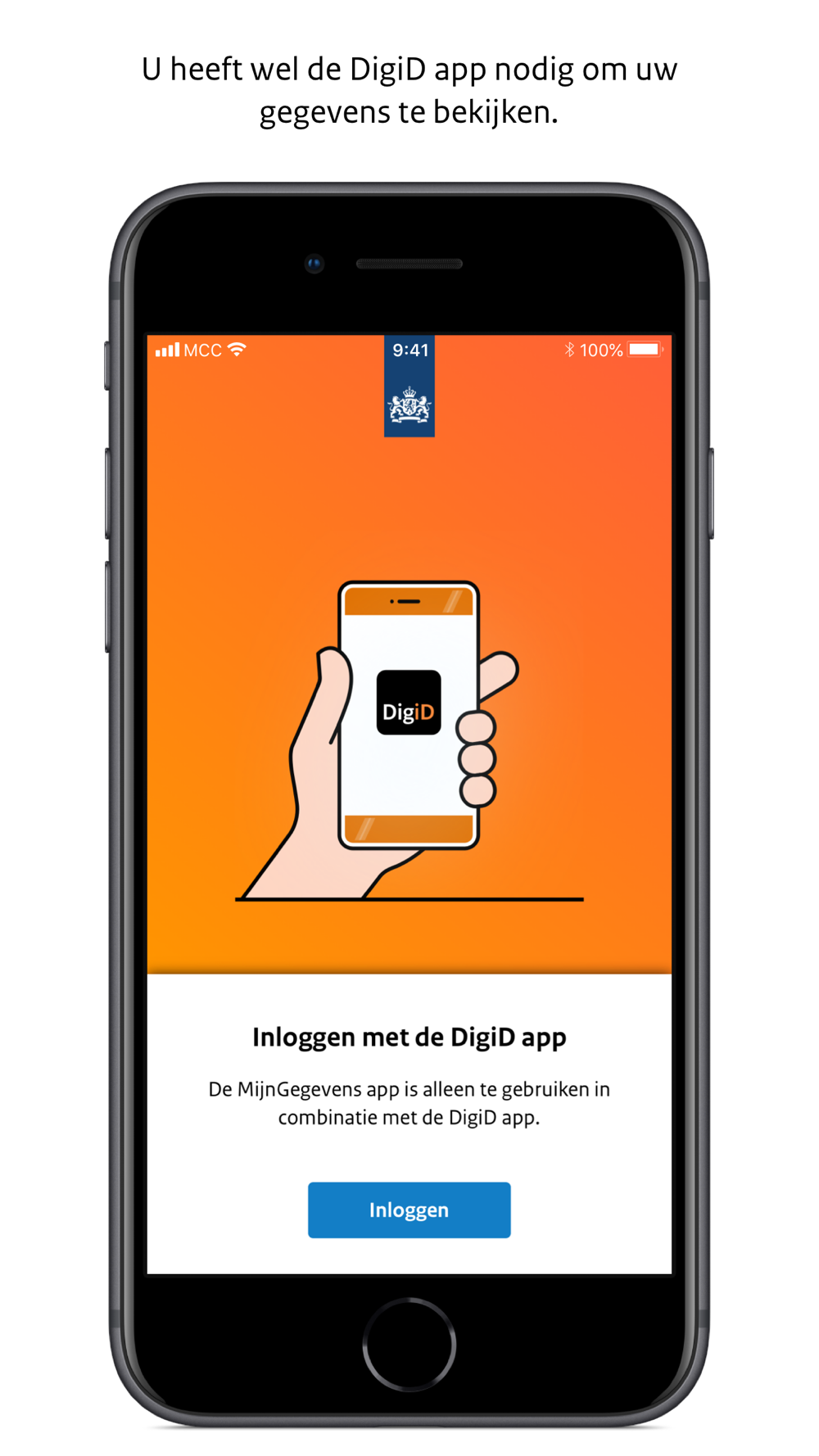 De MijnGegevens app is alleen te gebruiken in combinatie met de DigiD app. De DigiD app moet op hetzelfde apparaat staan en u gebruikt de pincode van de DigD app om de MijnGegevens app te openen.