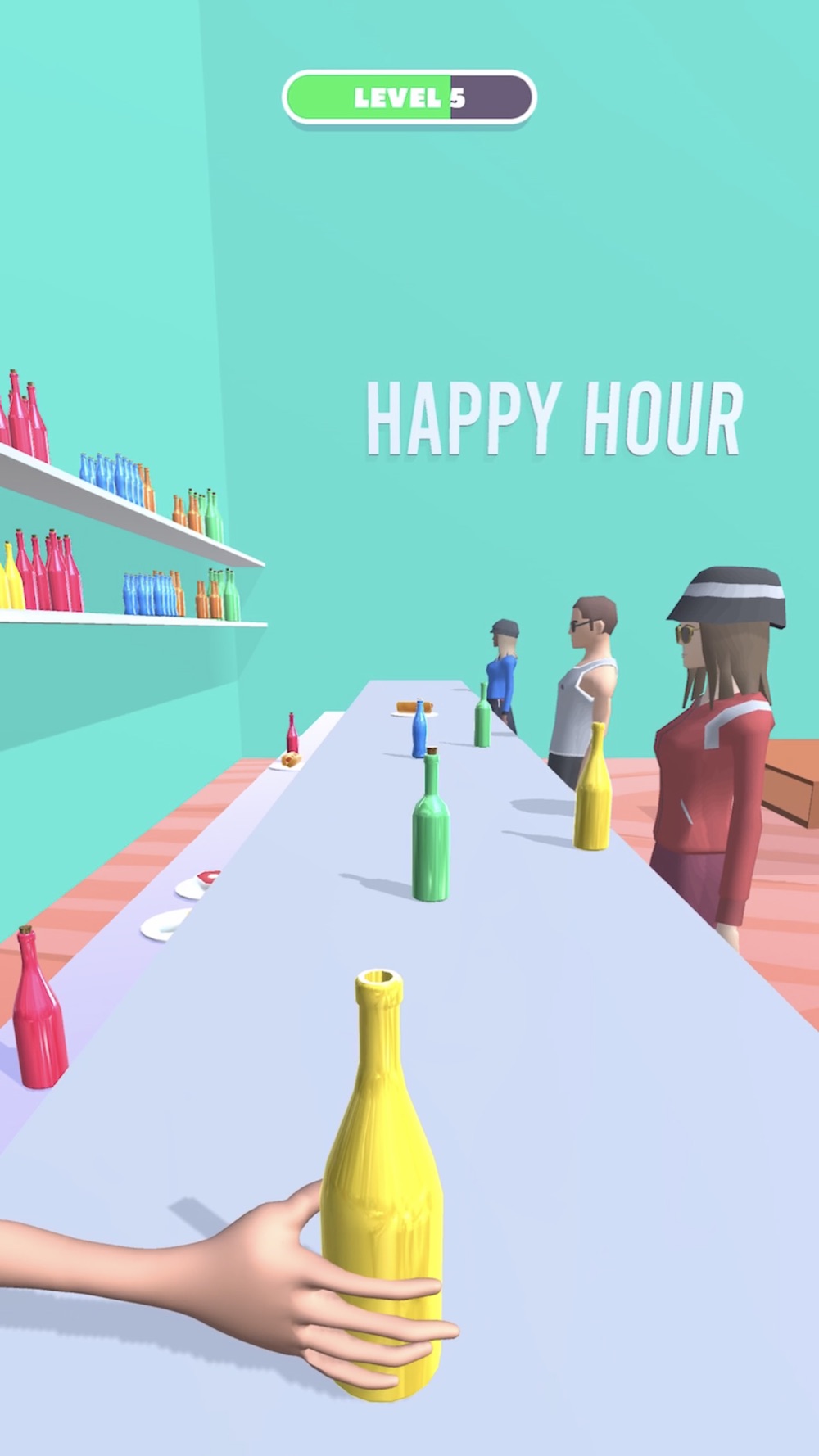 Drag and release to slide the bottle towards the customer.