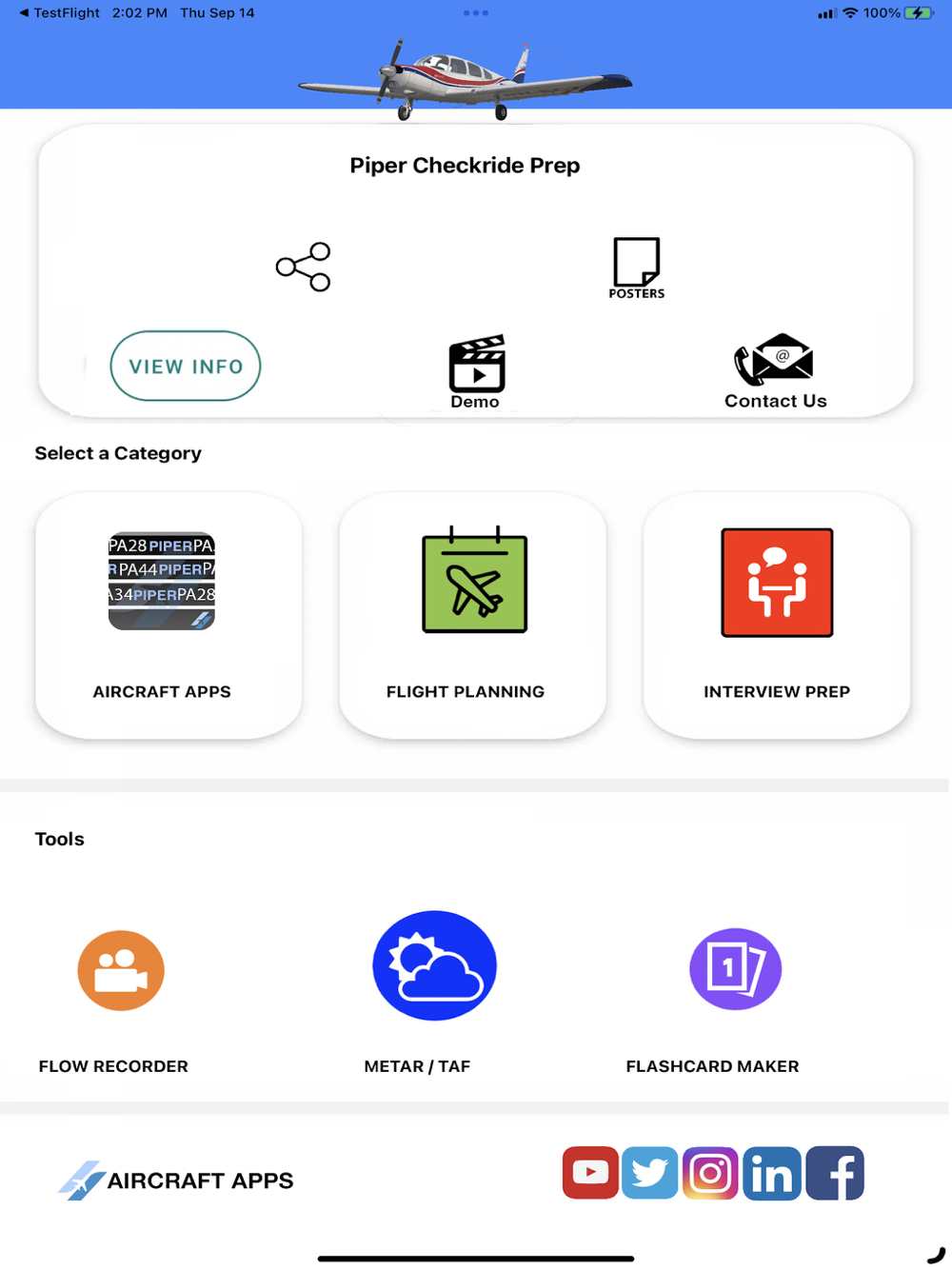 STEP 2: After AIRCRAFT APPS has downloaded to your device, tap Piper Checkride Prep on the Menu Screen and search through the in-app purchases for your aircraft.