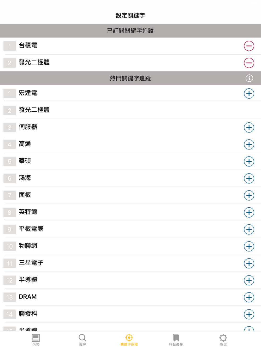 關鍵字追蹤:您可訂閱關鍵字組合,讓你每日重要新聞不漏