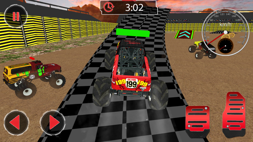 Perform some extreme driving as well as incredible stunts while driving monster trucks over the zig zag tracks.