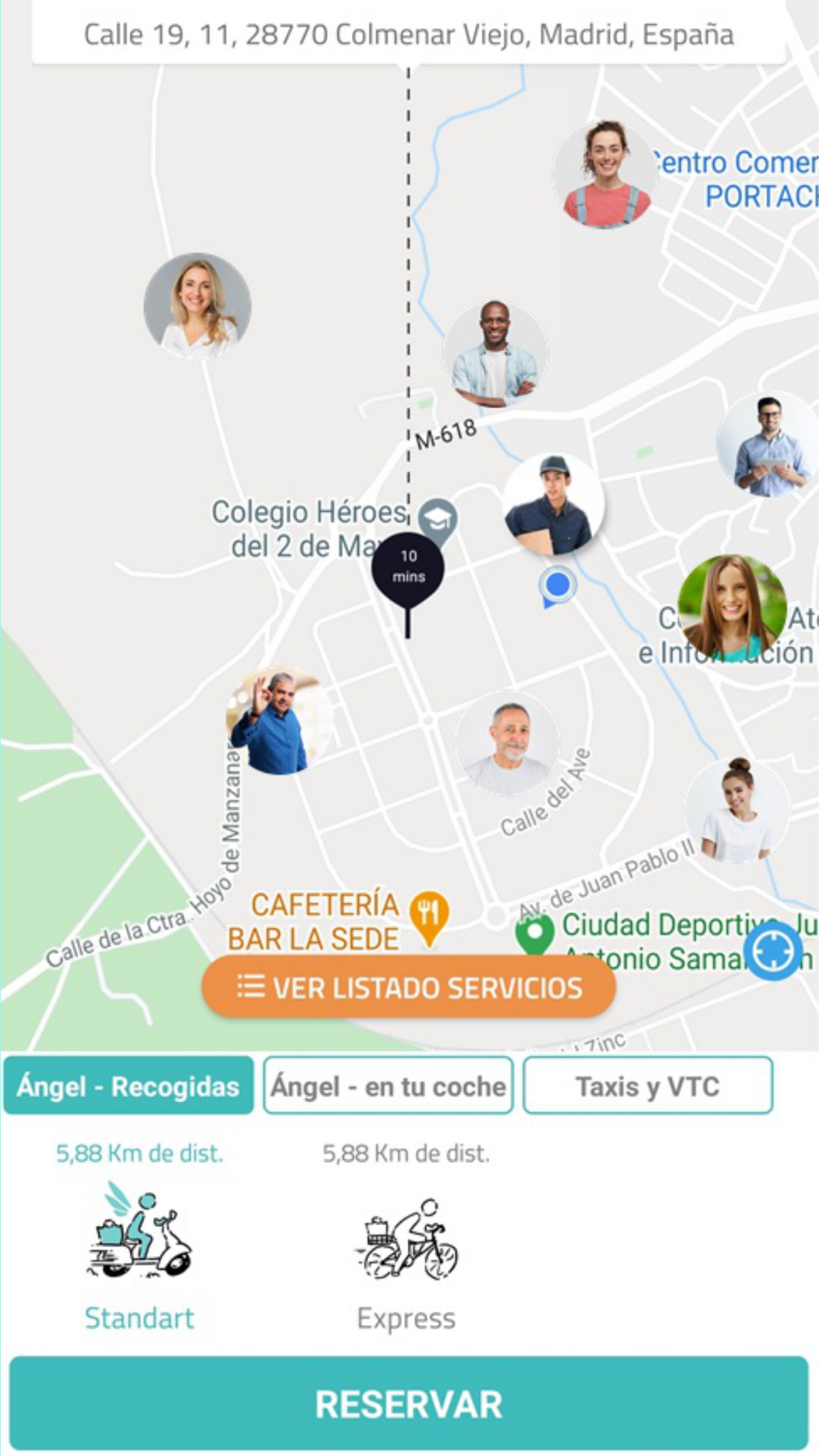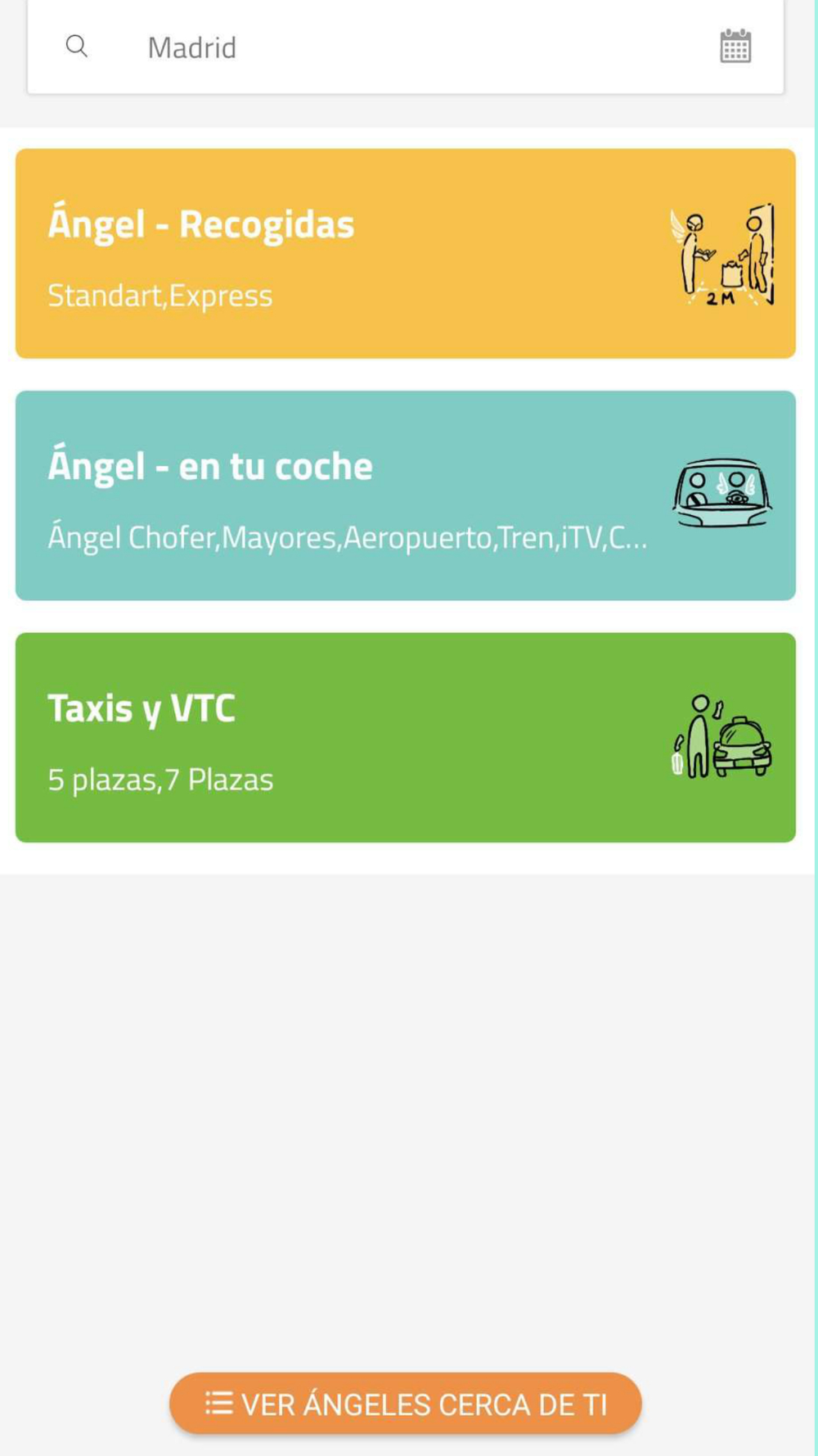 La plataforma ofrece servicios de ángeles recaderos y ángeles choferes, para recogidas de compras on line (click&collect), traslado seguro a personas que quieren disfrutar de una noche de ocio en la ciudad, acompañamiento a personas mayores en gestiones diarias, traslados al aeropuerto, pasar la iTV o sencillamente llevar a lavar el coche. Si tienes que trasladarte de un punto a otro en la ciudad habrá un ángel para llevarte en tu propio coche.