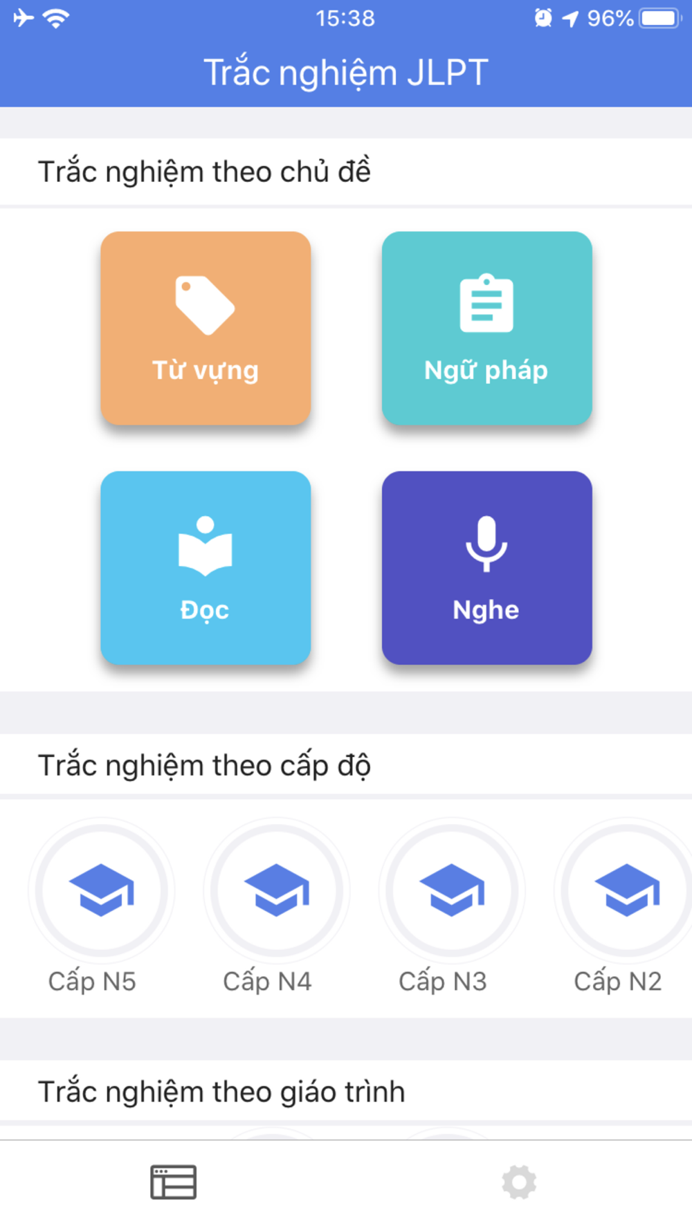 - Ứng dụng học tiếng nhật OKantan với kho câu hỏi trắc nghiệm khổng lồ với từng cấp độ N5, N4, N3, N2, N1 và chia ra thành các phần từ vựng, ngữ pháp, đọc, nghe.