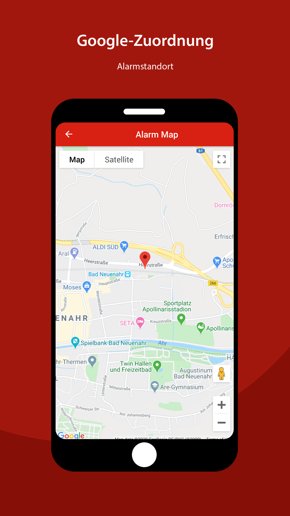 - Kostenlose Alarmierung über Push, E-Mail