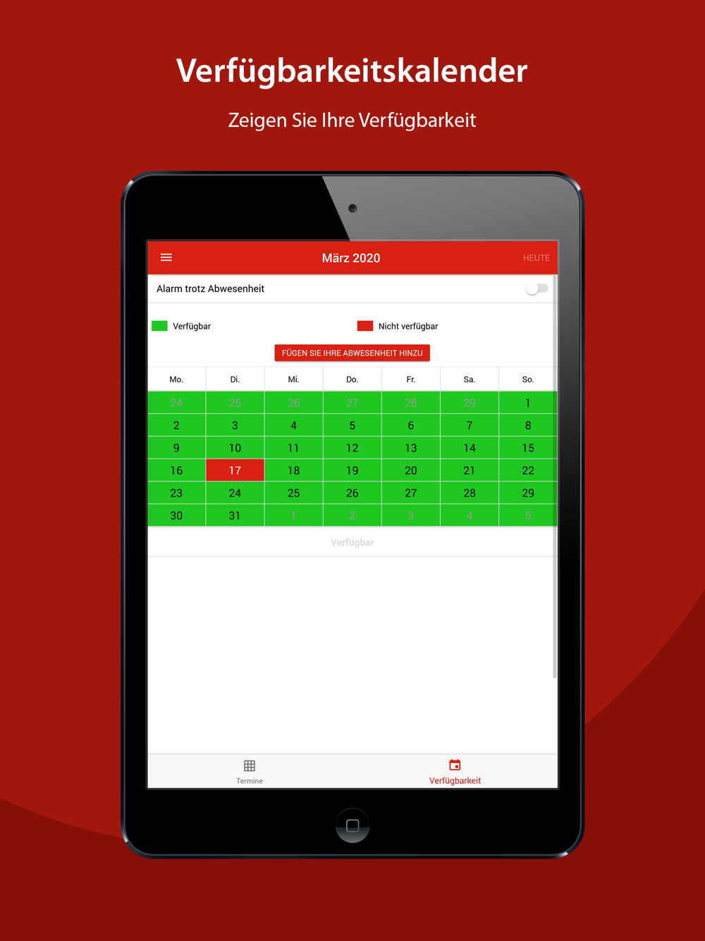 - Verfügbarkeitsplanung über eine Kalenderfunktion