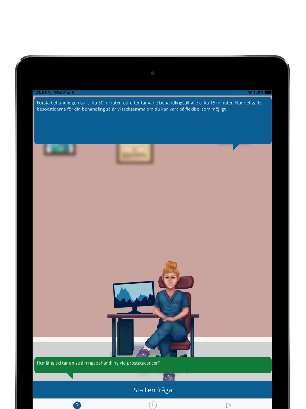 I den här appen kan du som genomgår strålbehandling på Sahlgrenska eller Södra Älvsborgs Sjukhus få mer information om din behandling.