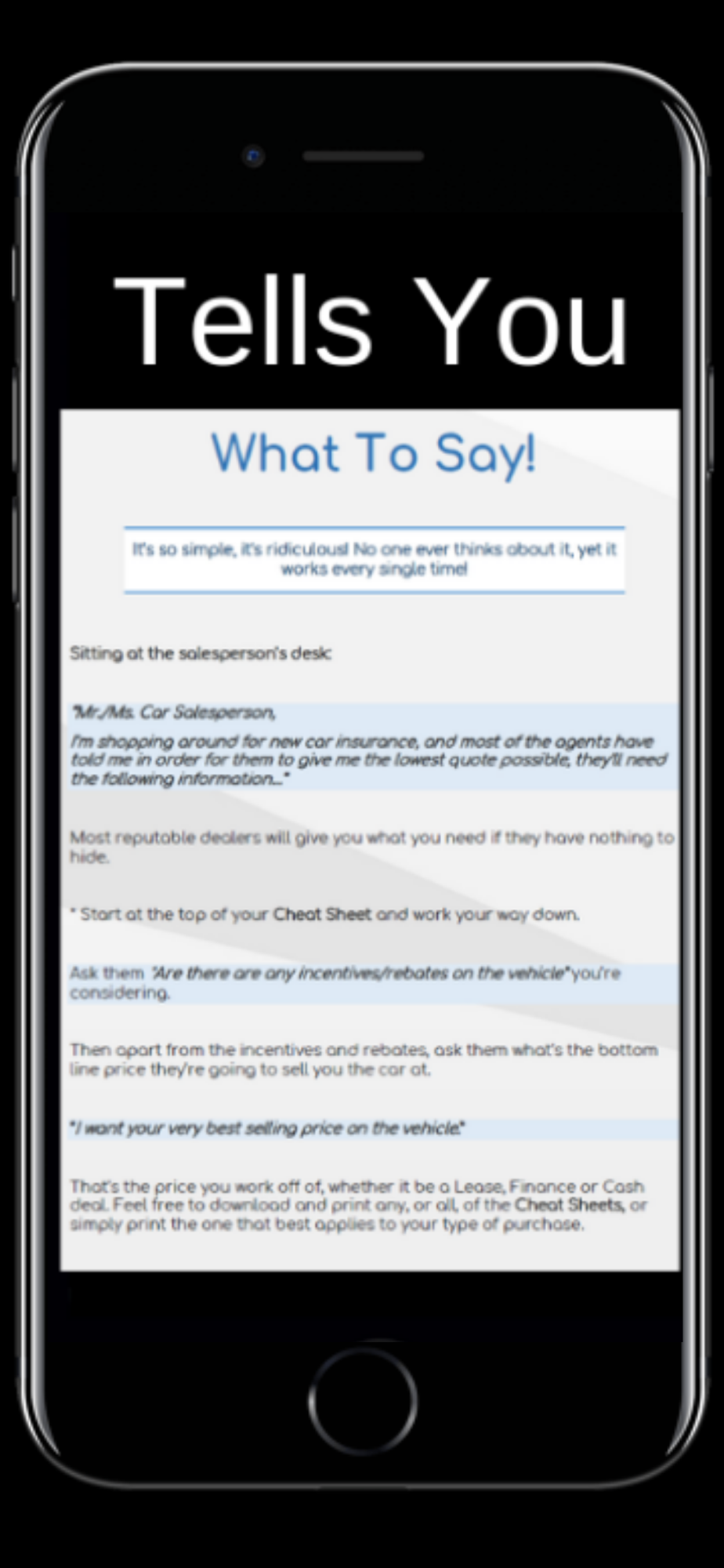 • Numbers don’t lie, but car salespeople will! After gathering the necessary information, simply send your completed cheat sheet for a “My Car Price Check Report.”