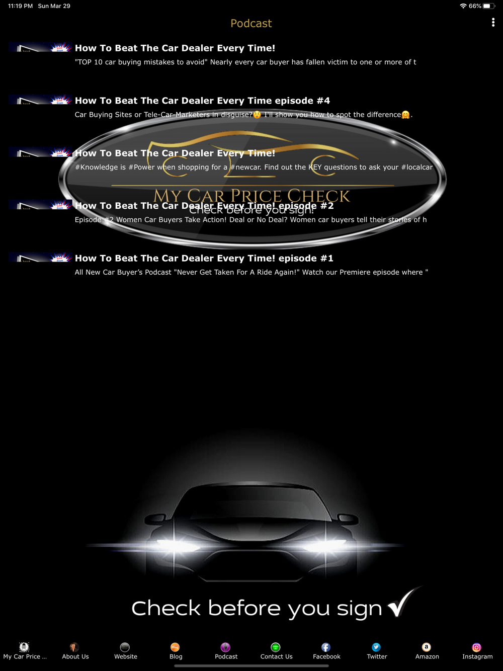 • My Car Price Check is a seamless new app that guides you safely through the car buying process, stopping car dealers dead in their tracks from taking you and your hard-earned dollars for a ride.