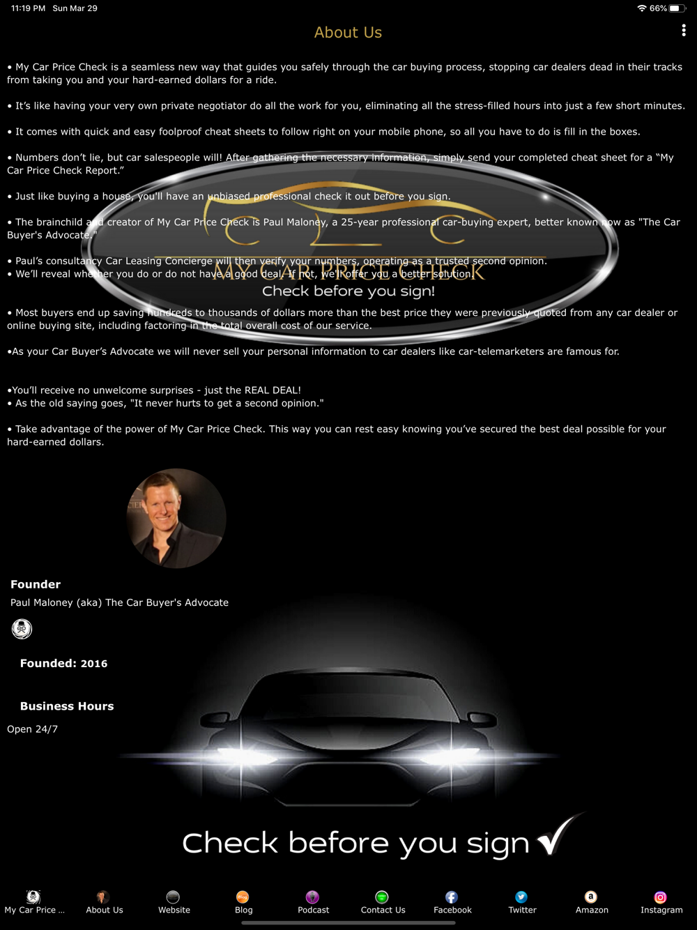 • The brainchild and creator of My Car Price Check is Paul Maloney, a 25-year professional car-buying expert, better known now as "The Car Buyer's Advocate."