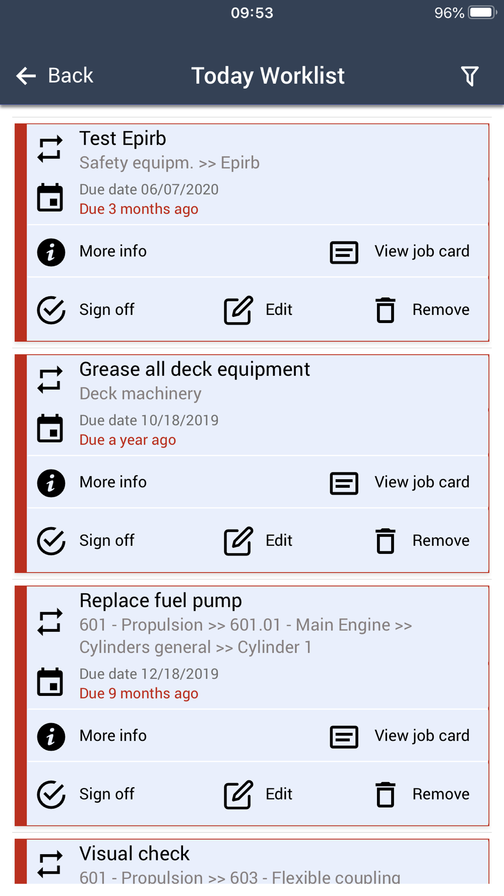 The Marad app is designed as an extension of our desktop and web application. Users are able to login, view their assigned licenses and perform simple tasks. Current available modules are maintenance, inventory, purchase, certificates, safety, FLGO, crewing, and checklists.
