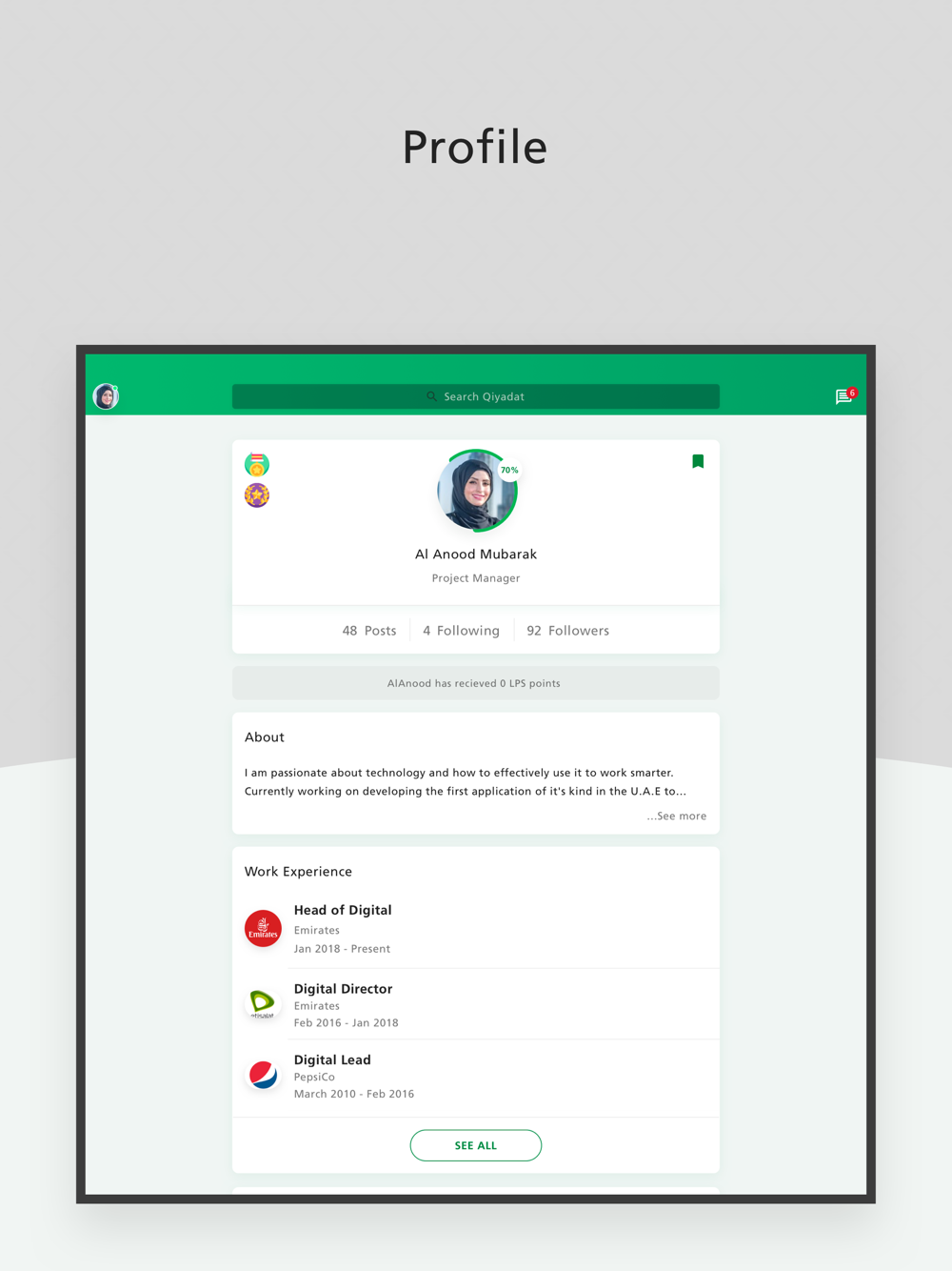 The Qiyadat Platform is a digital initiative of the UAE Government Leaders Programme (UAEGLP) with the aim of establishing a platform to nurture the best national talent in the country. The UAEGLP seeks to foster leadership skills and develop Emirati change agents capable of achieving the objectives of the UAE Vision 2021 and the UAE Centennial 2071. To support this vision, the Qiyadat Platform was launched targeting leadership personalities from federal and local government entities as well as the private sector. The platform also provide continuous learning and development opportunities