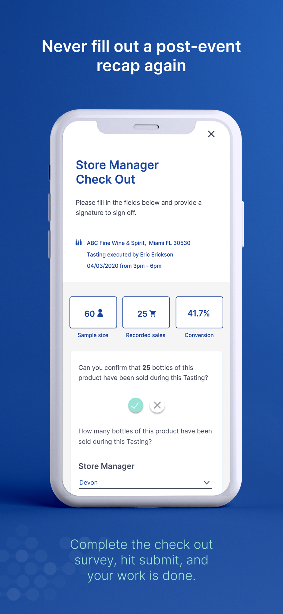 Tastings is a robust execution tool that provides talent with all the information they need before, during and after a sampling event. Talent captures demographic, competitor, sampling and conversion data which is verified by store managers. Uploaded to the Tastings web portal, this information becomes actionable data brand managers can use to optimize future events.