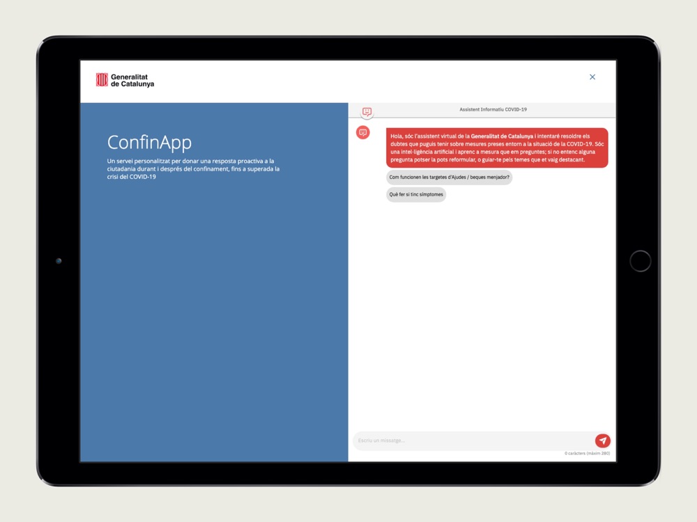 ConfinApp pretén ser un acompanyament i la porta d’entrada a tota la informació i serveis que el Govern de Catalunya posa a disposició de la ciutadania, autònoms i empreses durant i després del confinament.