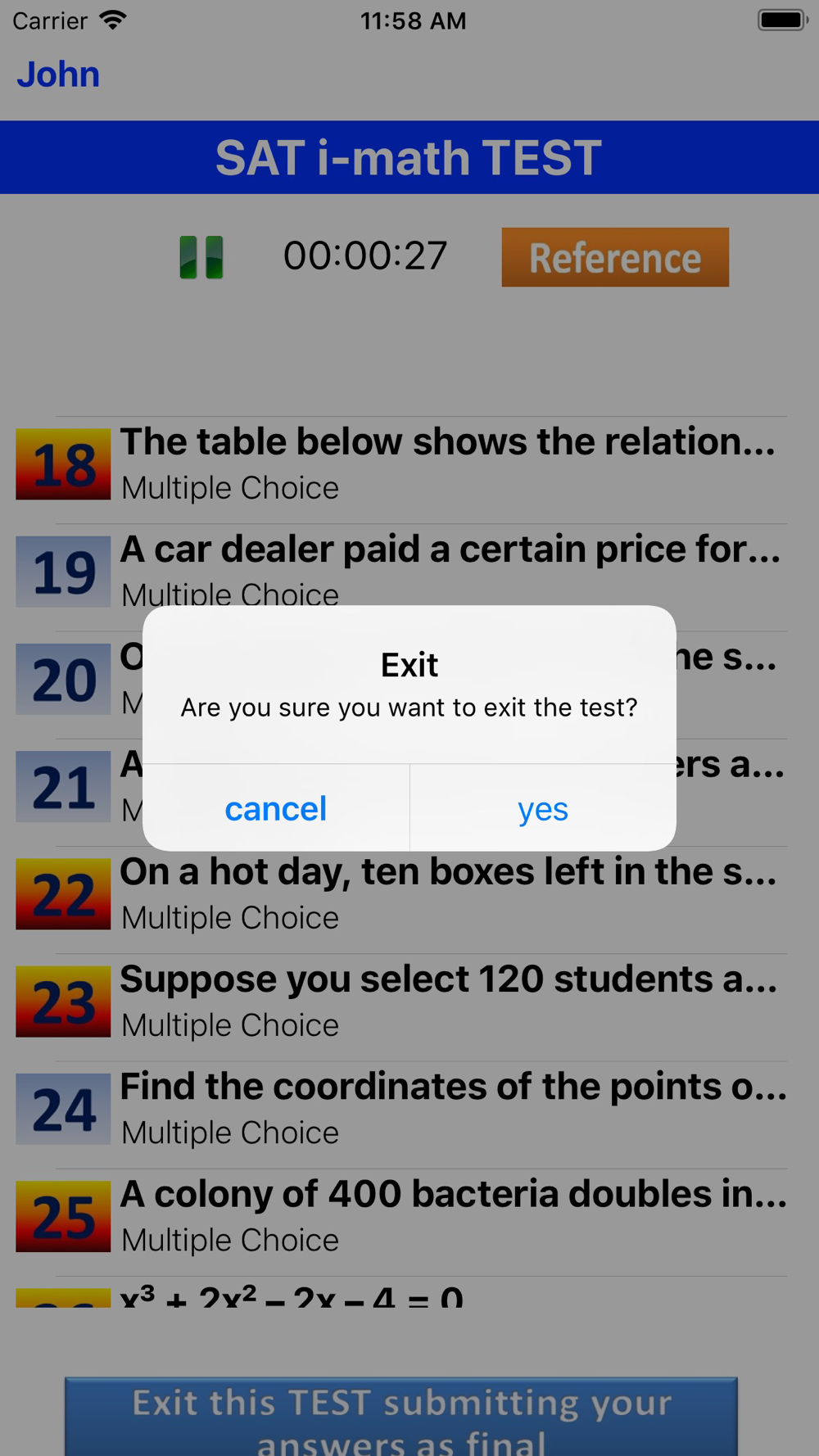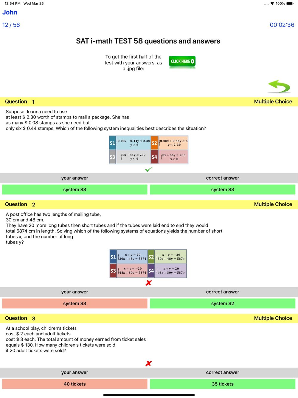 --> test with 58 questions (following the specifications of the new SAT math test)