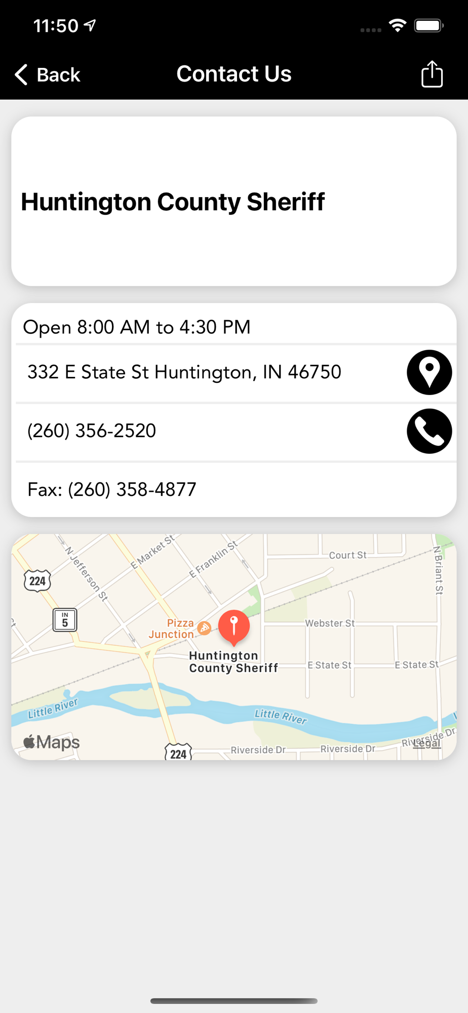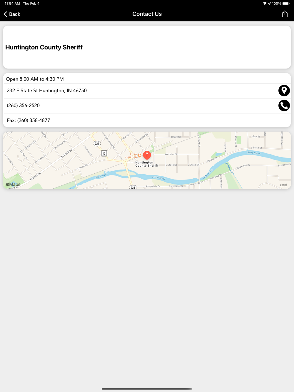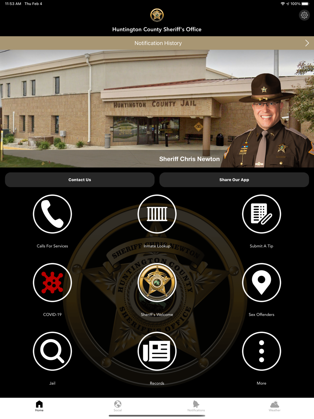 The Huntington County Sheriff’s Office mobile application is an interactive app developed to help improve communication with area residents. The Huntington County Sheriff App allows residents to connect with the Huntington County Sheriff’s Office by reporting crimes, submitting tips, and other interactive features, as well as providing the community the latest public safety news and information.