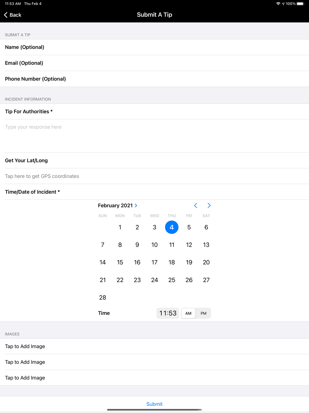This app is not intended to be used to report emergency situations. Please call 911 in an emergency.