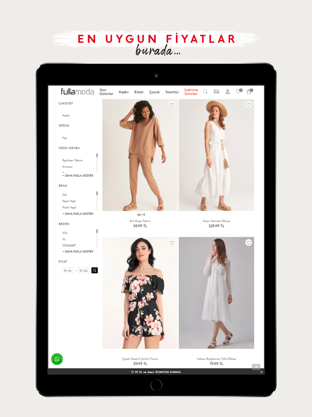 Kendine özgü tasarımları ios uygulaması ile keşfetme zamanı. Fullamoda uygulaması ile giyim alışverişlerinizi tek tuşla tamamlayın.