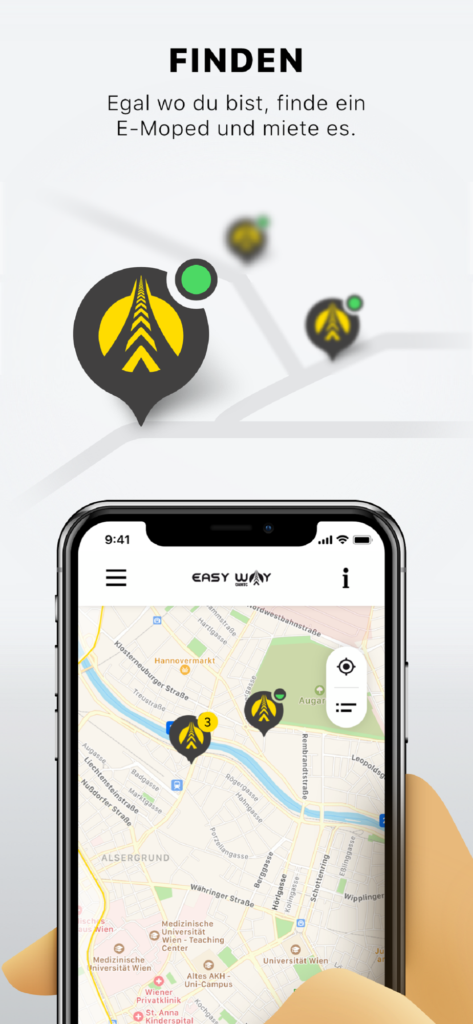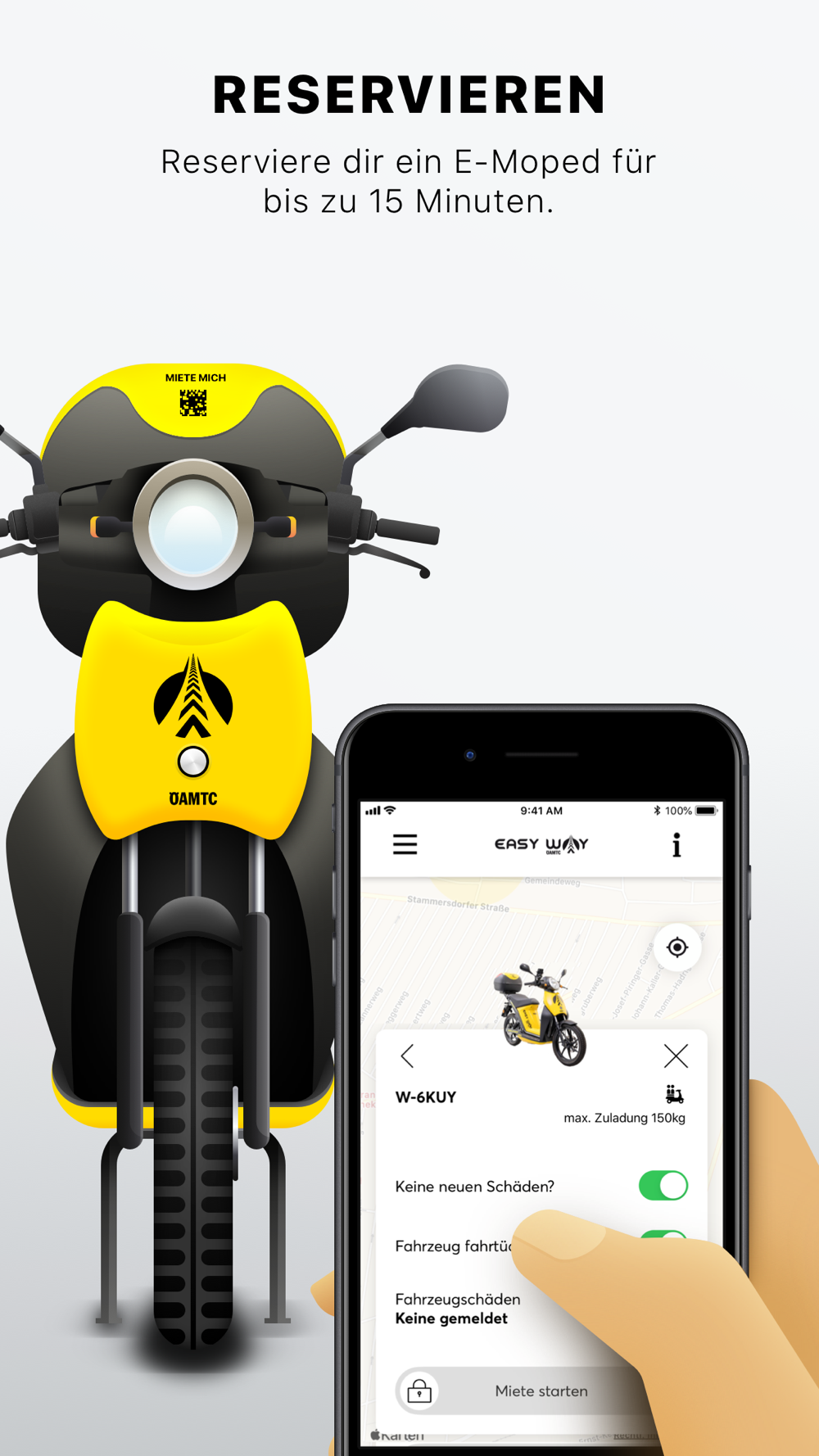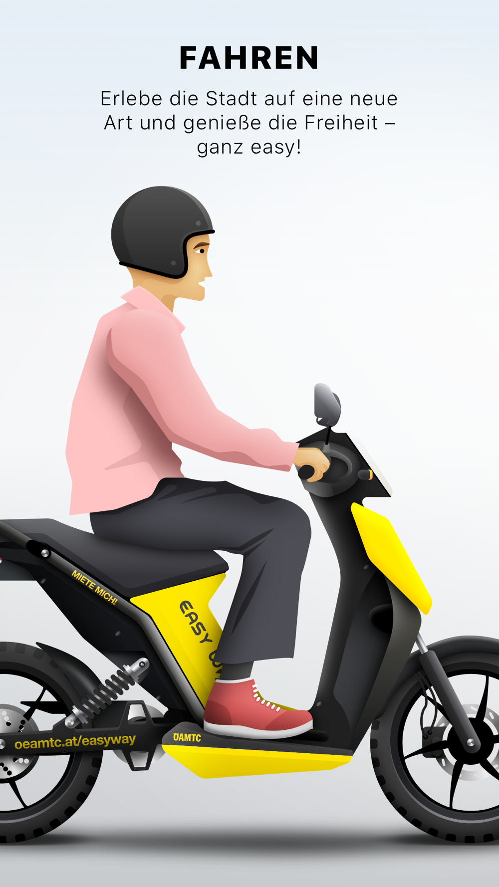 ÖAMTC easy way ist das E-Moped-Sharing des Mobilitätsclubs in Wien und Graz. Nach erfolgreicher Registrierung kannst du mit deinem Smartphone zu jeder Zeit ein ÖAMTC easy way E-Moped mieten und deine Stadt erkunden.