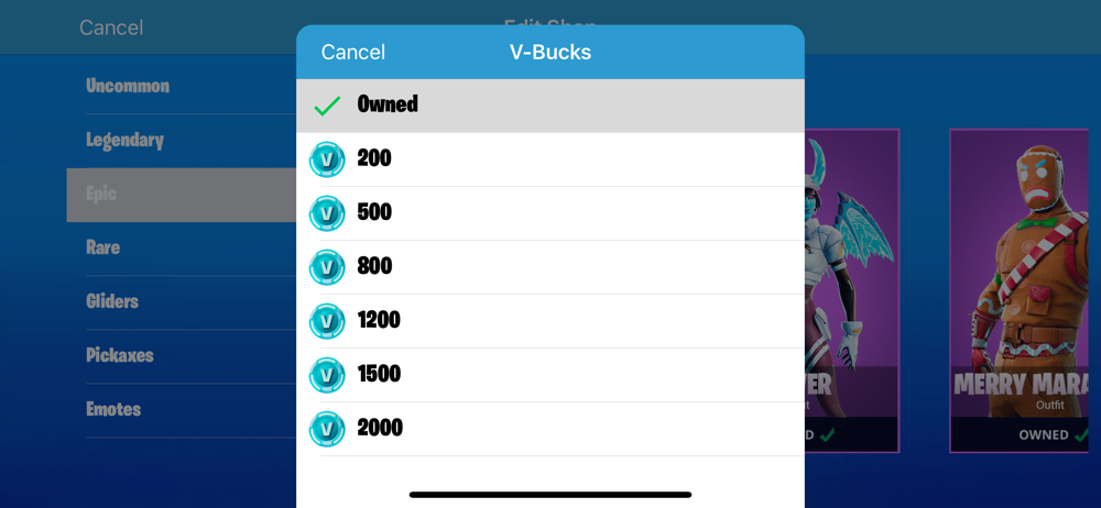 - Customize your shop, and add items based on your preferences: skins, gliders, pickaxes and emotes.