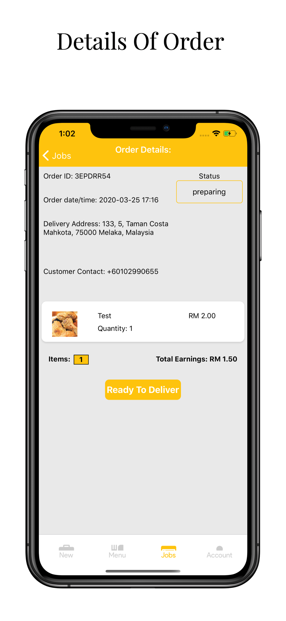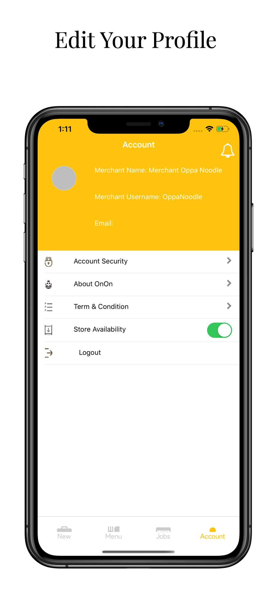 Onon food delivery order management app for merchant user