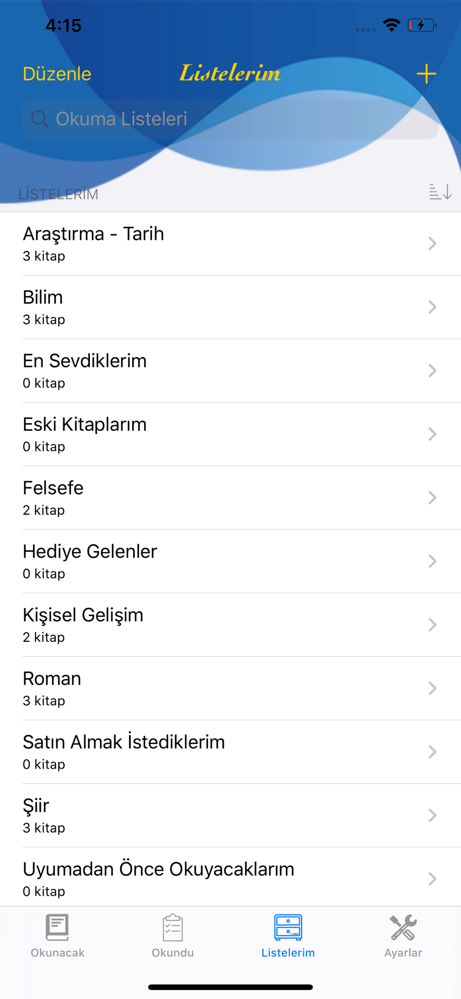 Okuma listeleri, Kategoriler, Anahtar kelimeler oluştur.