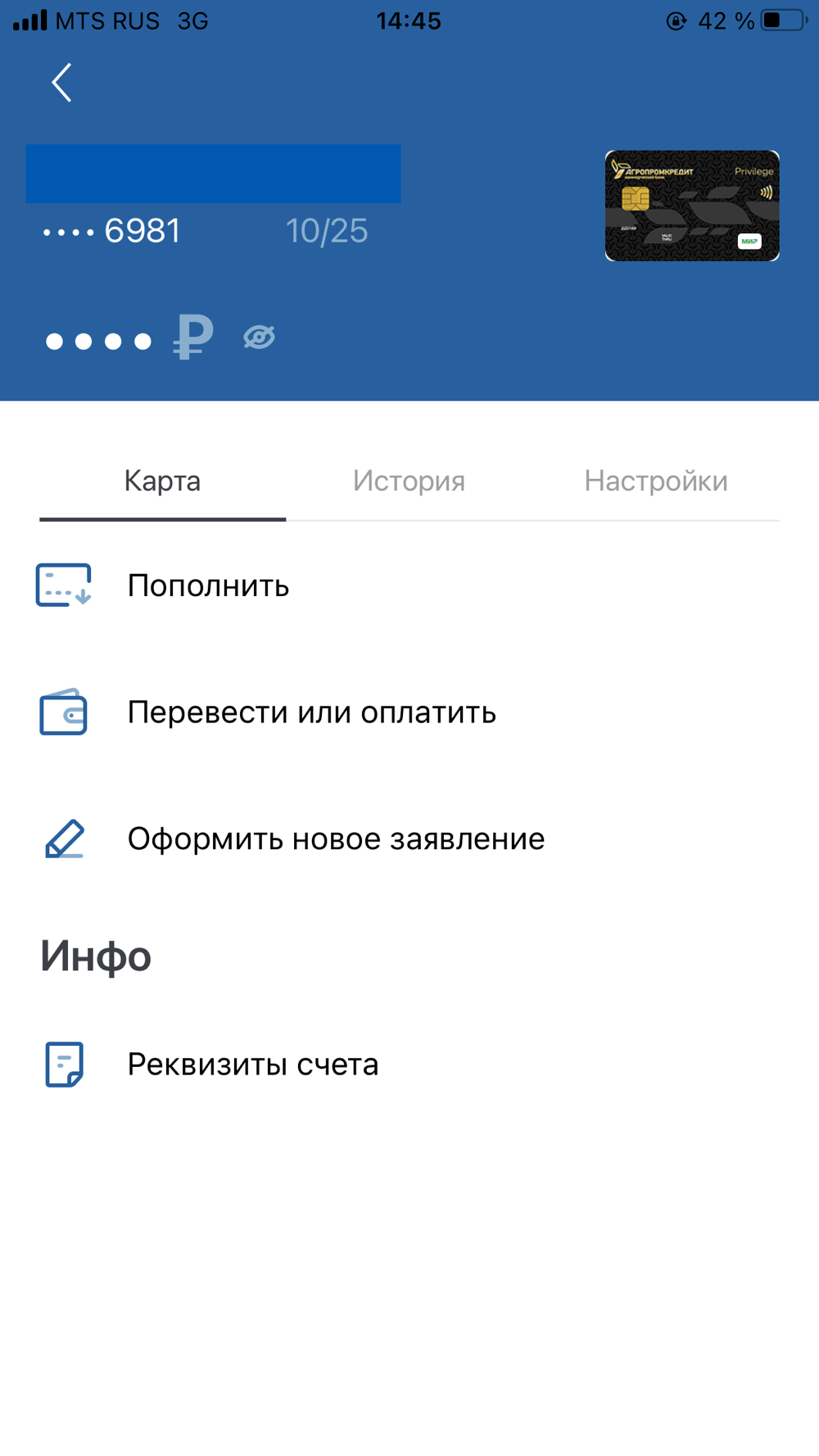 - просматривать актуальную информацию по счетам и вкладам, картам и кредитам; получать выписки, просматривать историю операций; получать реквизиты счета с возможностью отправки на e-mail или сохранения на телефон;