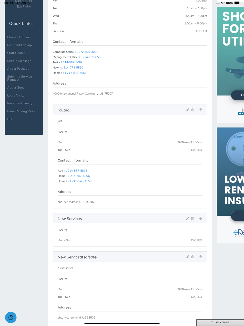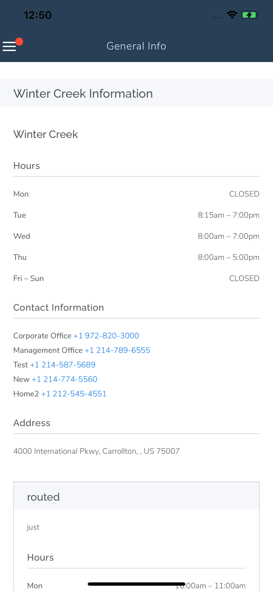 Can't find your property's phone number of office hours? All of that is located under the general info section of the application with easy 'tap-to-dial' functionality.