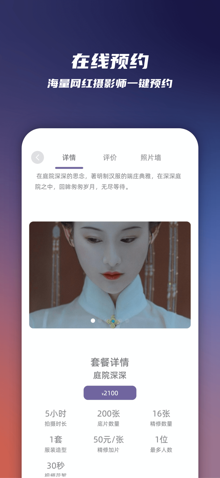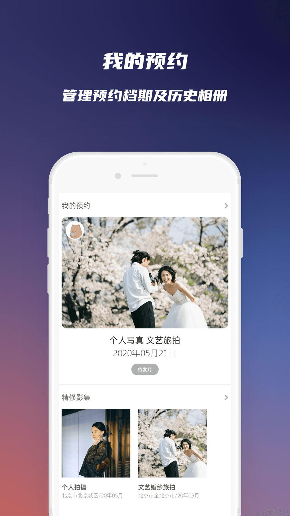无论身在何处,无需各处搜索对比,基于地理位置或精准搜索。一键预约身边的超人气摄影服务。