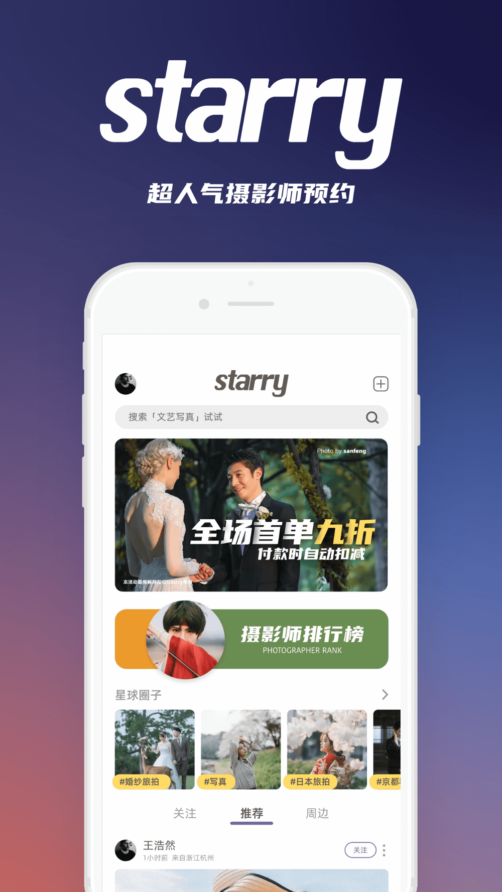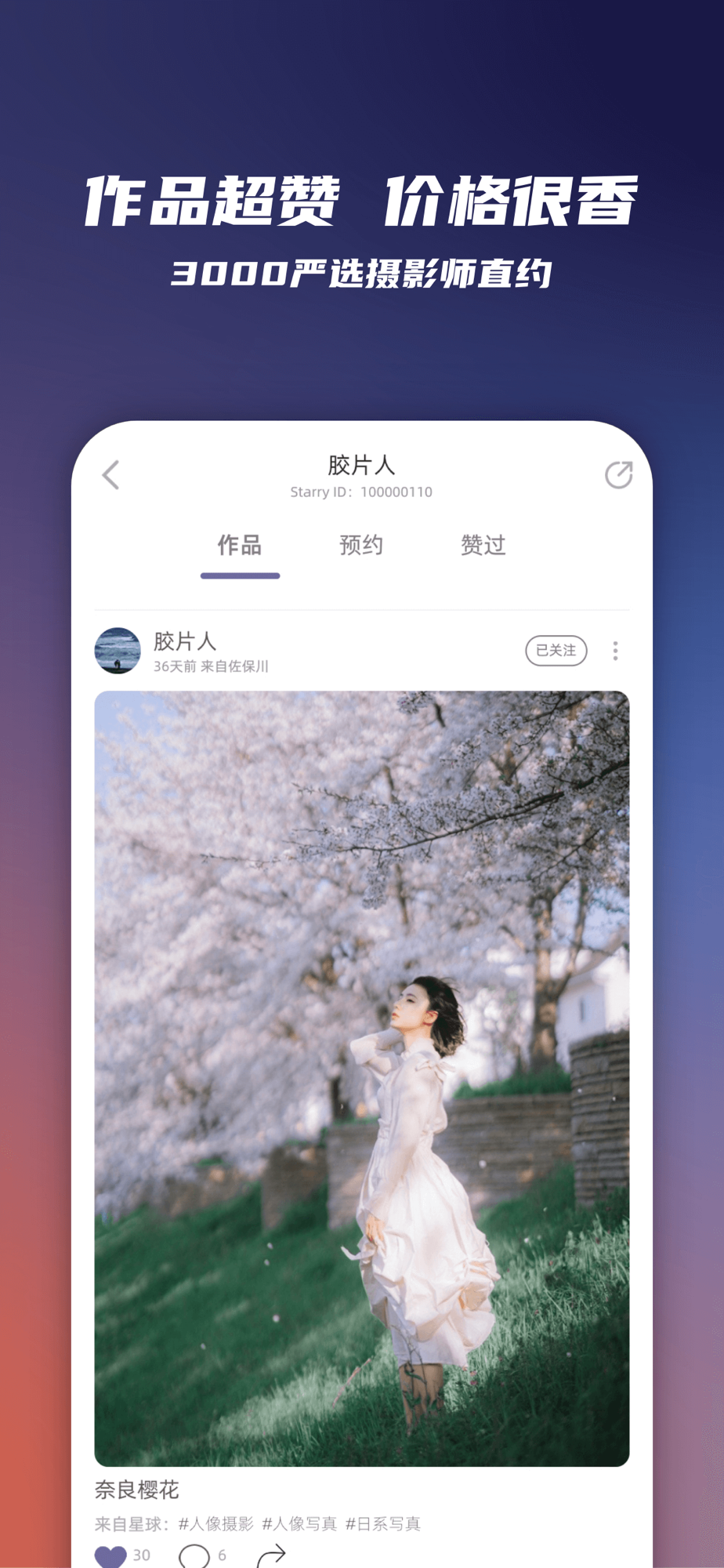 从找到摄影师搜索、即时沟通、下单预约、在线选片、确认付款,全部流程Starry内完成,交易安全100%保障。