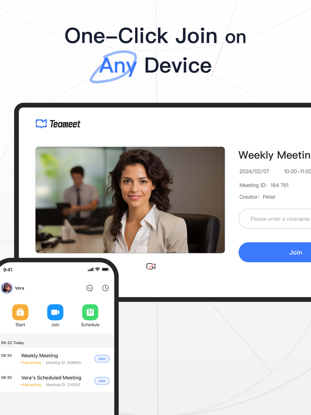 Teameet is available on both iPhones & iPads, and even desktop or mobile browsers, allowing participants to join meetings anytime, anywhere.