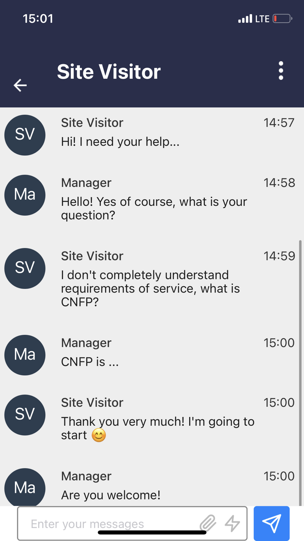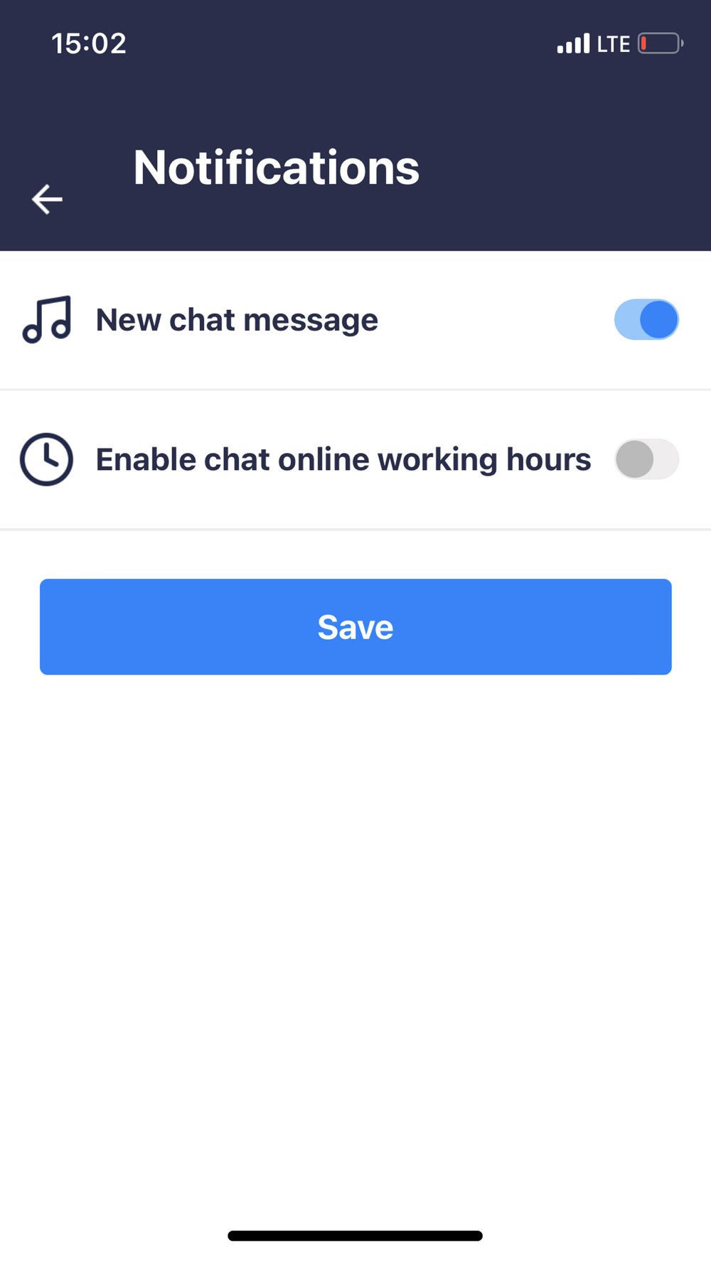 • Never miss a chat message from a customer with full push notification support