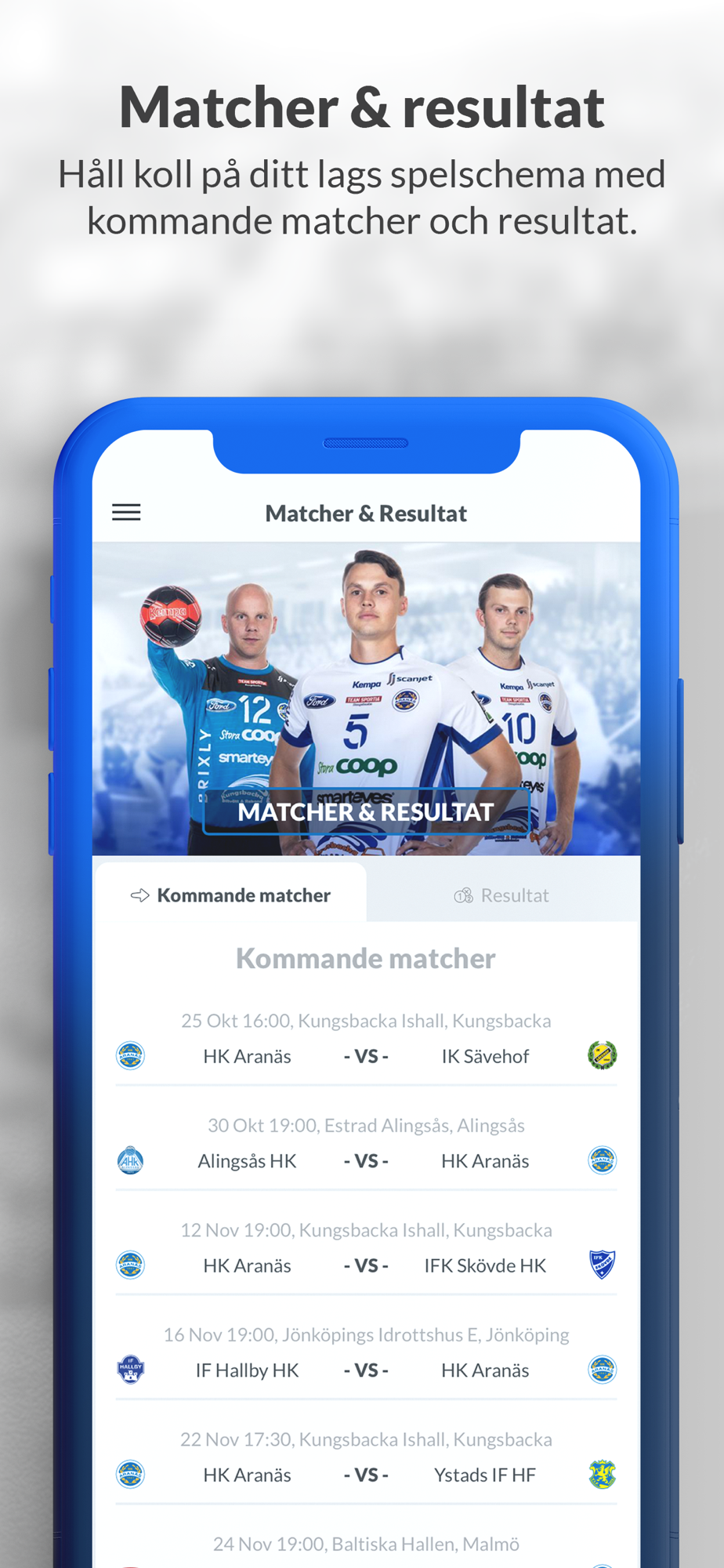 Gameday är Aranäs digitala matchprogram för dam- och herrlaget. Här hittar du senaste nyheterna, spelarintervjuer, statistik från tidigare matcher och aktuella trupper. Du kan även följa matcherna via live score.