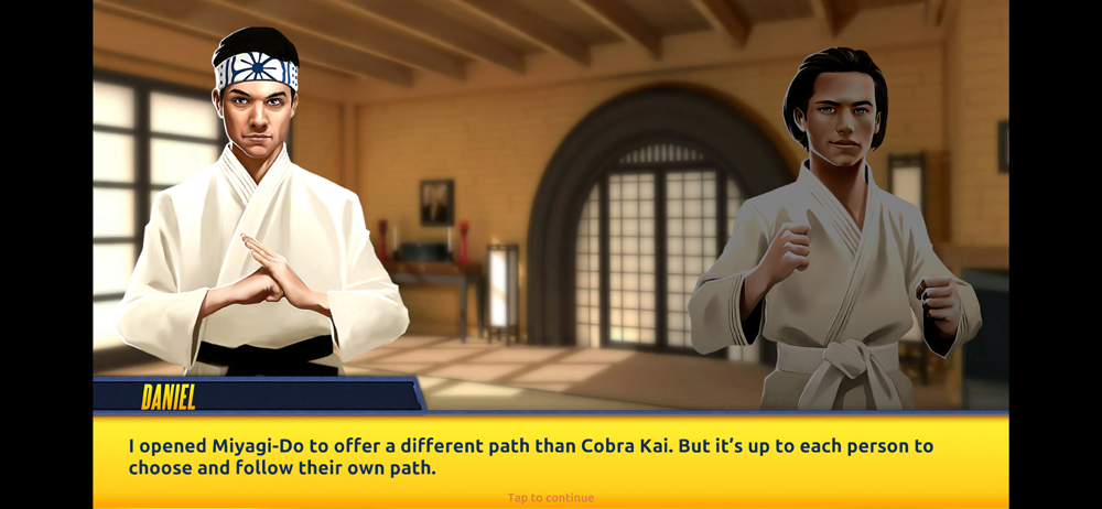 Pick your path and choose your dojo in the official mobile game packed with turn-based strategy and fast-paced Collectible Card Game fighting! Are you Cobra Kai or Miyagi-Do? Now you can step inside the dojo to unlock your favorite fighters, train them up, and compete with friends!